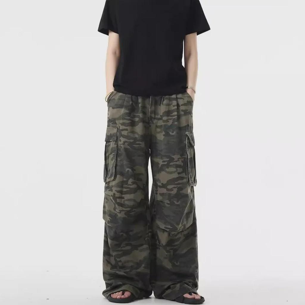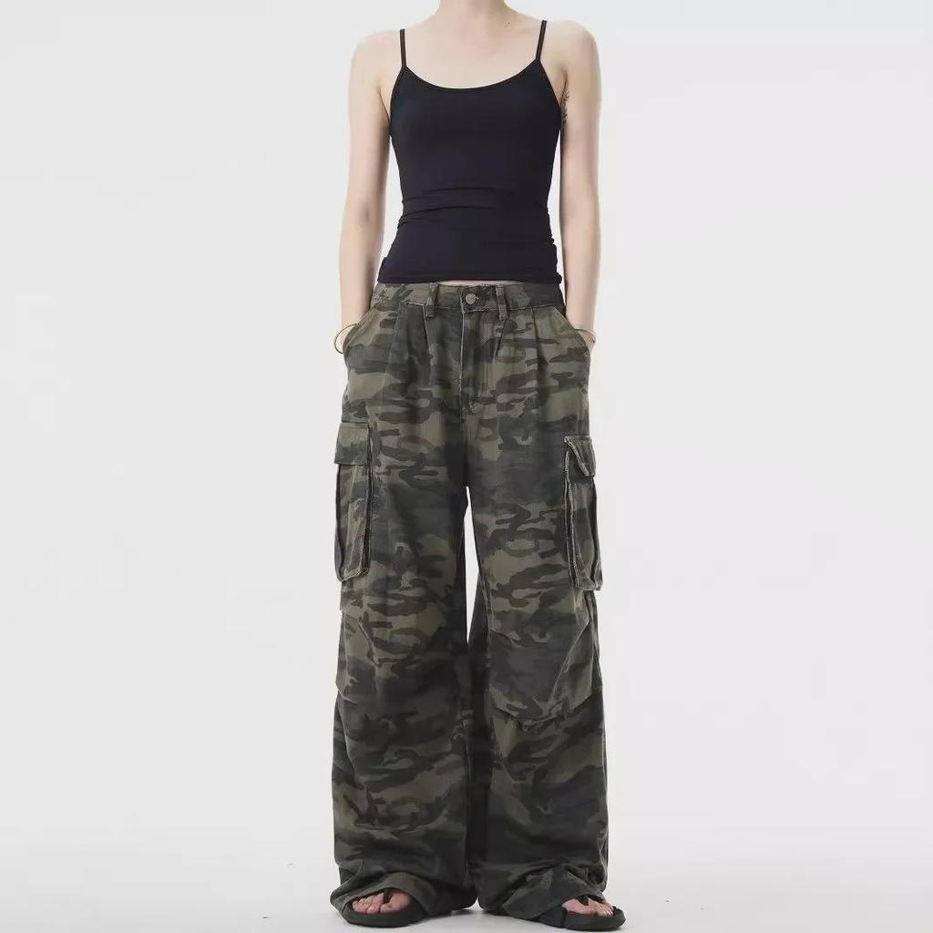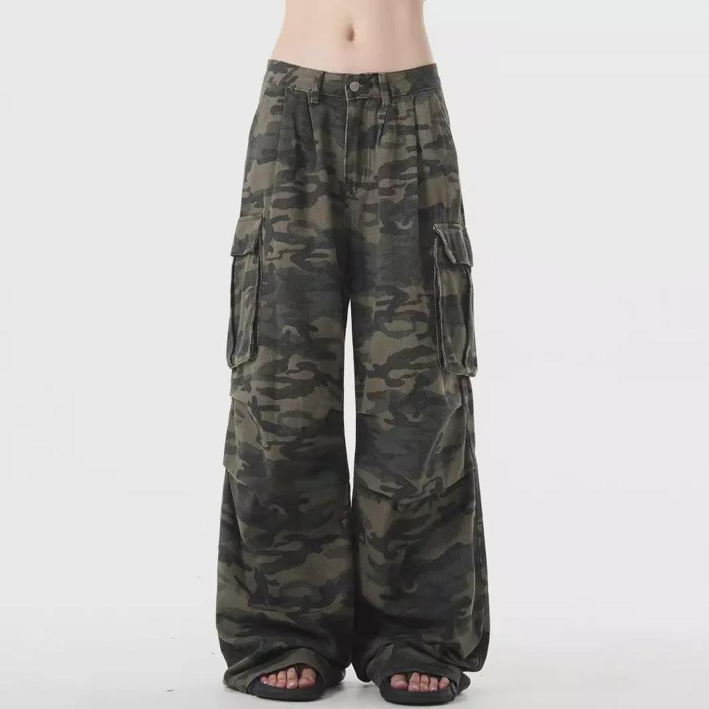 Комбинезон унисекс с камуфляжным принтом в винтажном стиле — свободный крой, множество карманов, модный ретро-стиль.