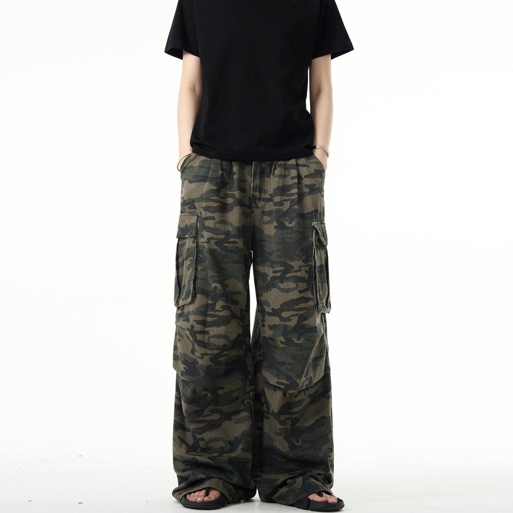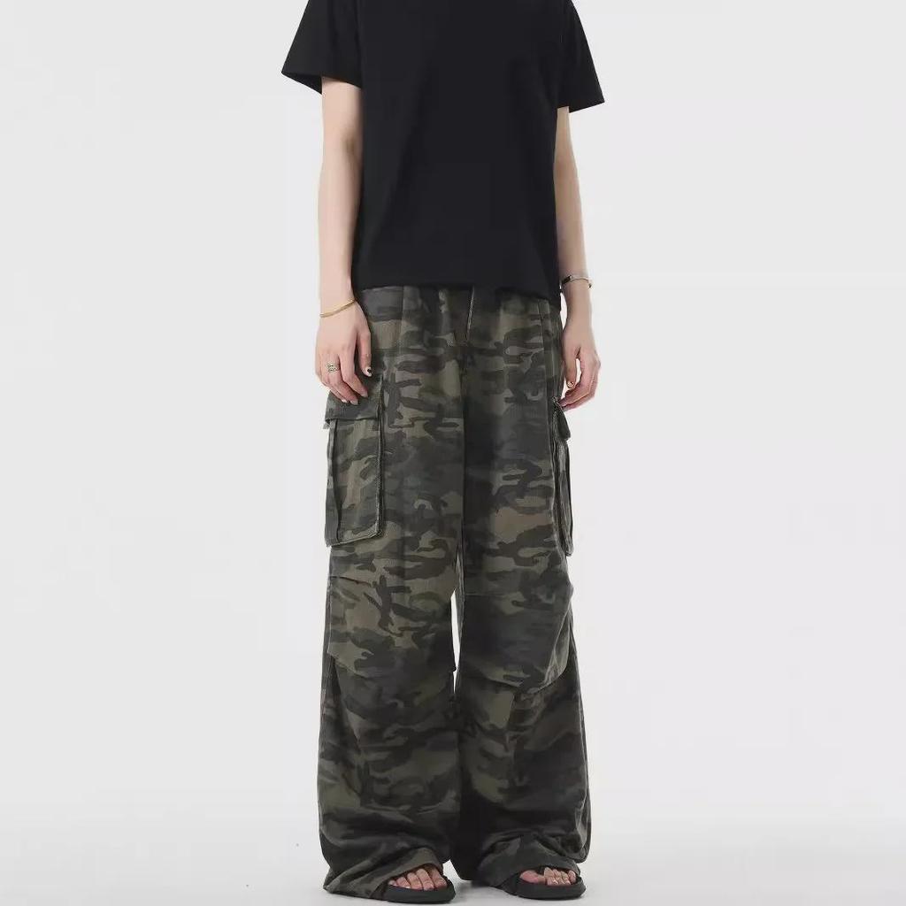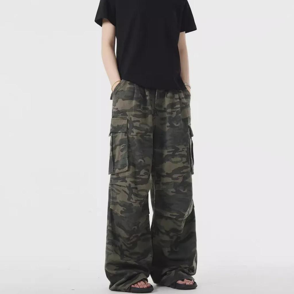 Комбинезон унисекс с камуфляжным принтом в винтажном стиле — свободный крой, множество карманов, модный ретро-стиль.