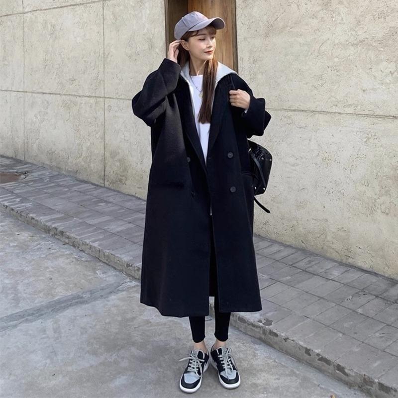 Модный дизайн Поддельный двухсекционный твидовый пиджак Женский зимний свободный в длинной секции Сращивание с капюшоном утолщенное твидовое пальто