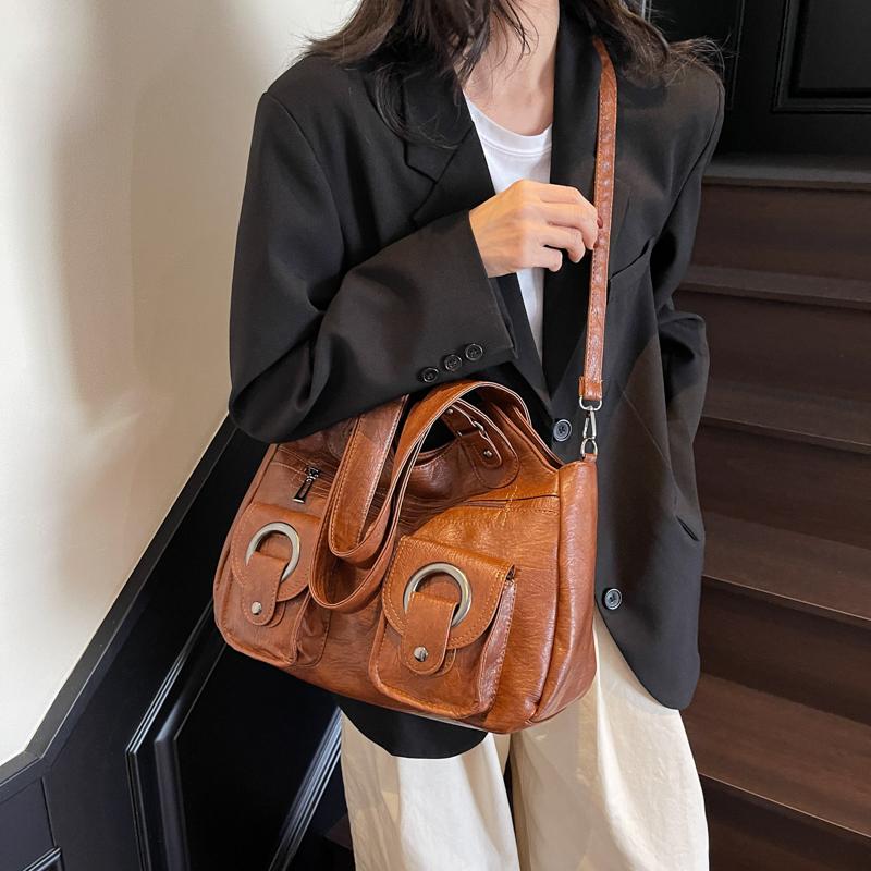 Мягкая кожаная сумка-тоут женская ретро многоцелевая сумка через плечо сумка