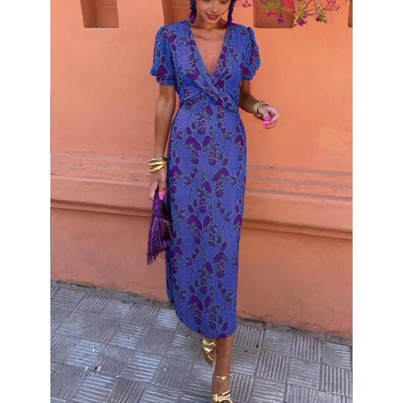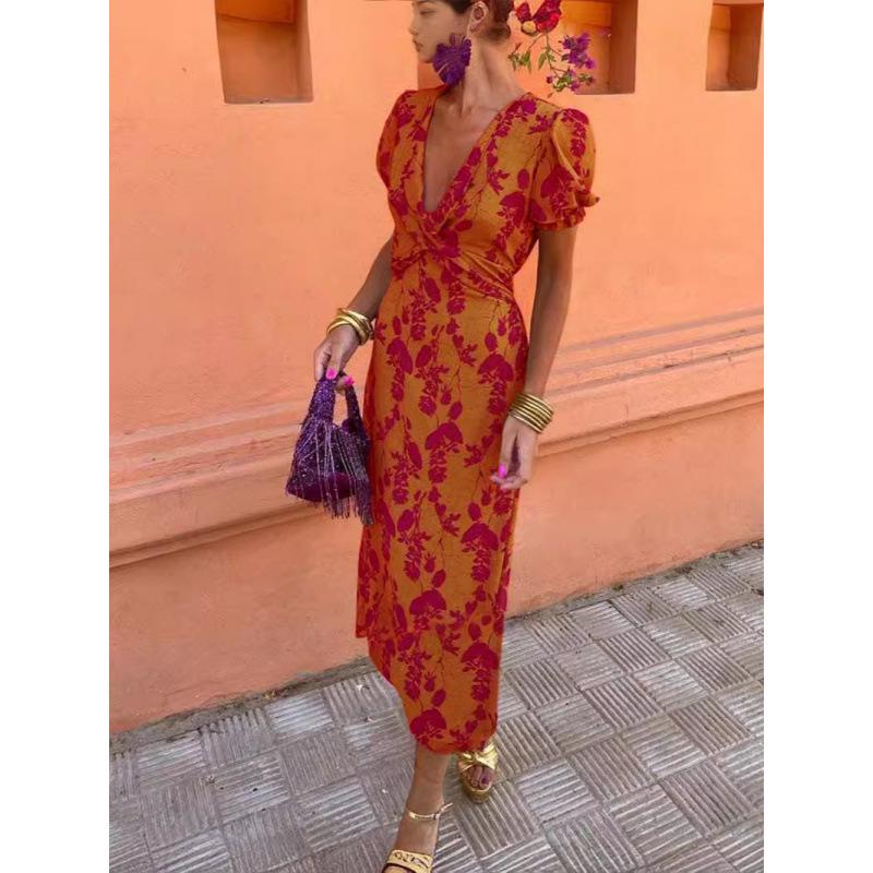 ZZ2024 Летнее женское модное платье с контрастным принтом и рукавами-фонариками, длинное: Элегантный и тонкий