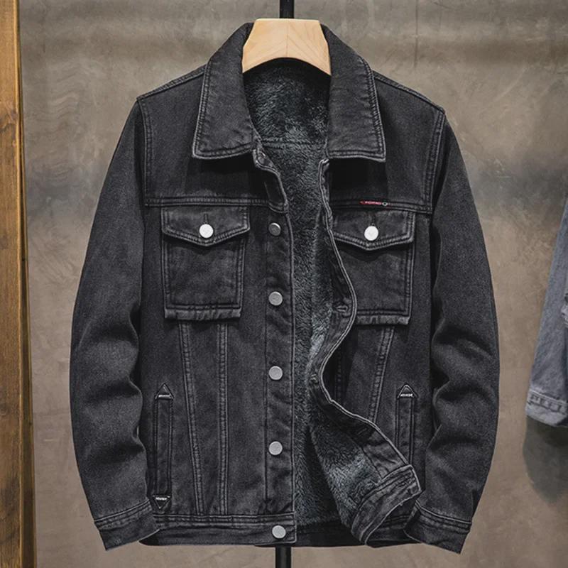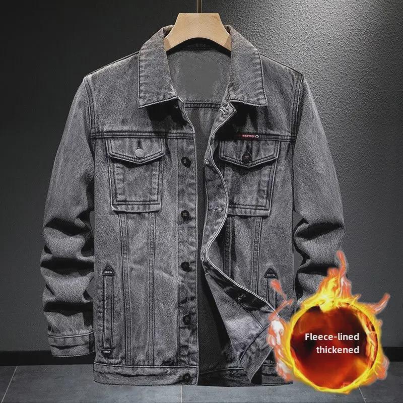 Мужская модная бархатная джинсовая куртка - осень/зима: Свободный, стильный, универсальный, плотный, теплый, повседневный.