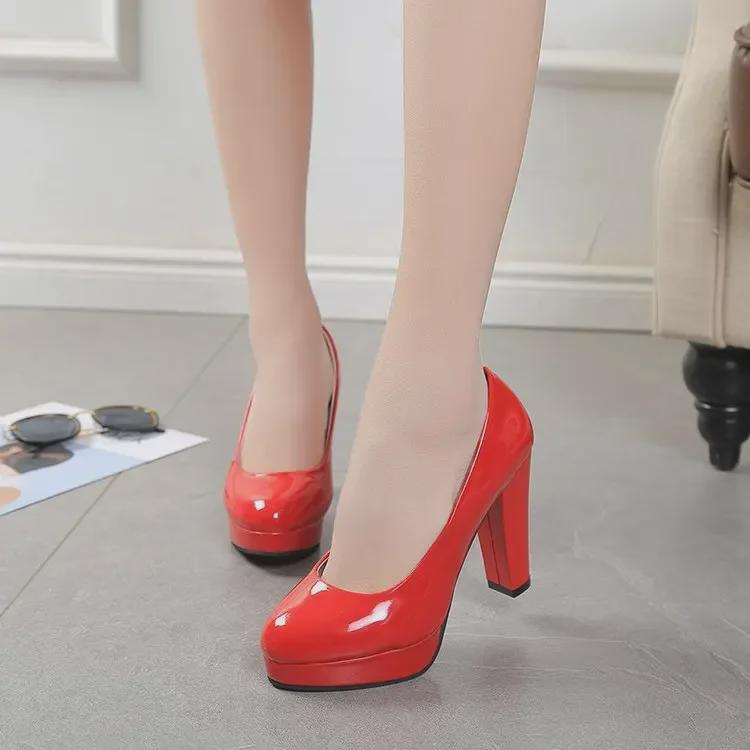 Весна/лето 2020 женские туфли из лакированной кожи на толстом каблуке и платформе - модные белые туфли на каблуках для свадьбы и работы
