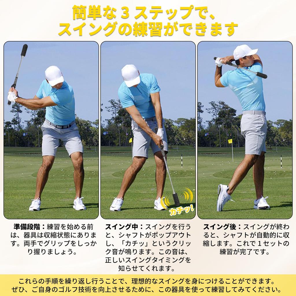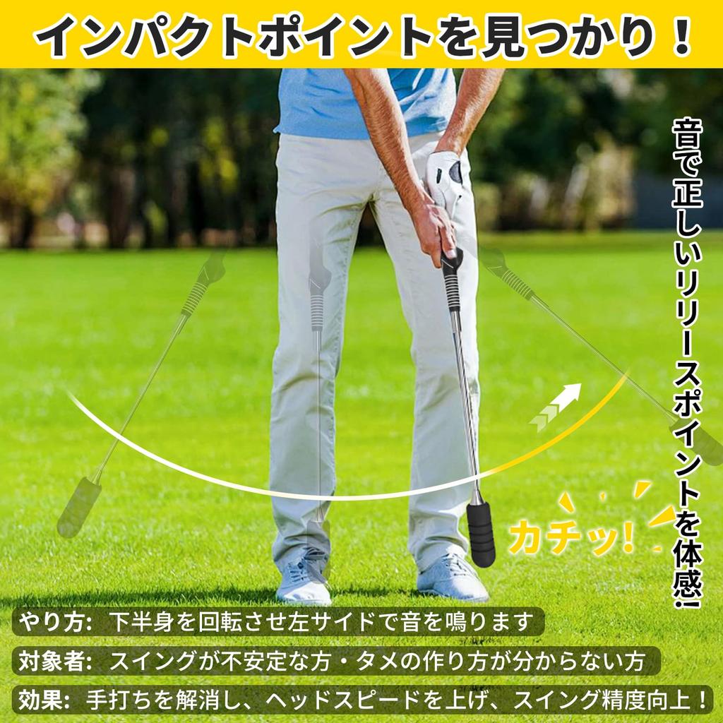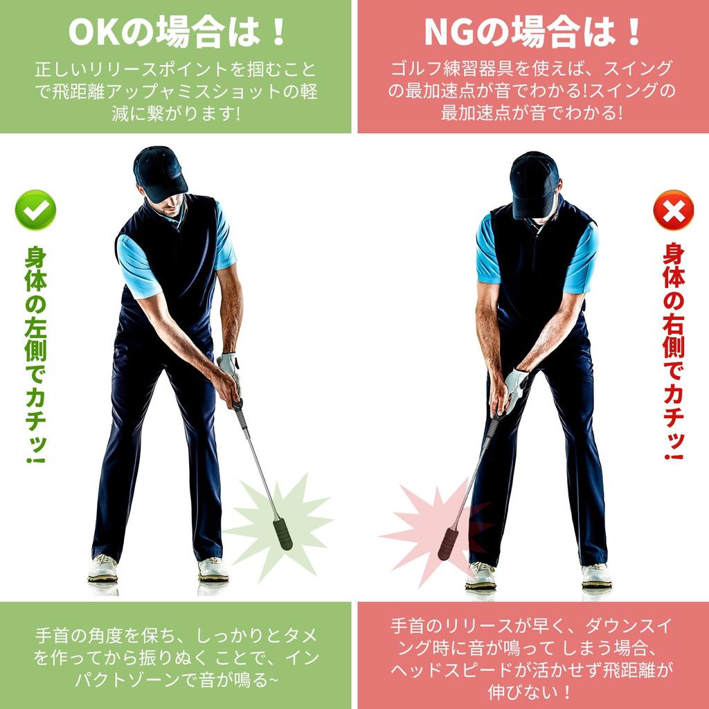 [Мгновенная звуковая обратная связь] Звук щелчка, который раздается во время тренировочного замаха в гольфе, обеспечивает точную обратную связь о времени замаха.. Если вы правильно замахнулись, вы услышите щелчок в зоне удара и будете знать правильный момент для отпускания.. Эта функция звуковой обратной связи также решает проблемы, с которыми сталкиваются многие гольфисты, такие как замах только рукой и ранний выпуск мяча.. Повторяя свой замах, используя звук этого тренировочного замаха в качестве ориентира, вы подсознательно освоите идеальное движение тела и замах, что приведет к улучшению дальности удара.