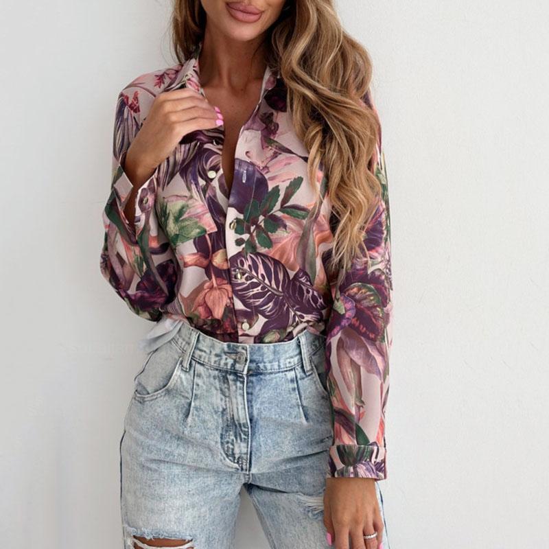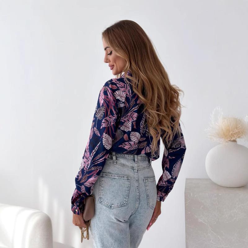 Женская блузка-рубашка с длинным рукавом и леопардовым принтом на весну и лето