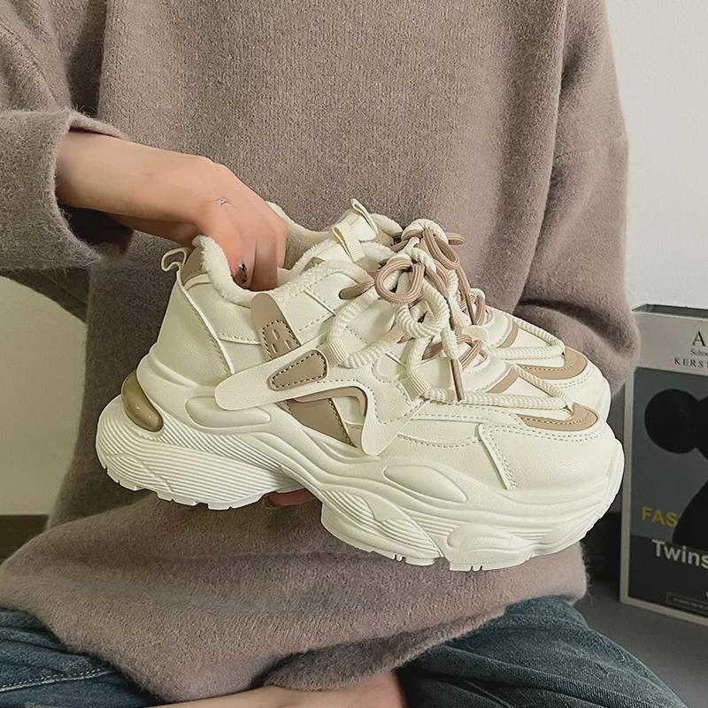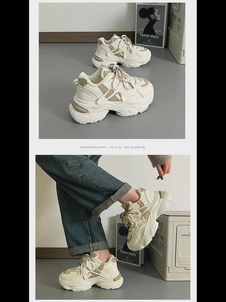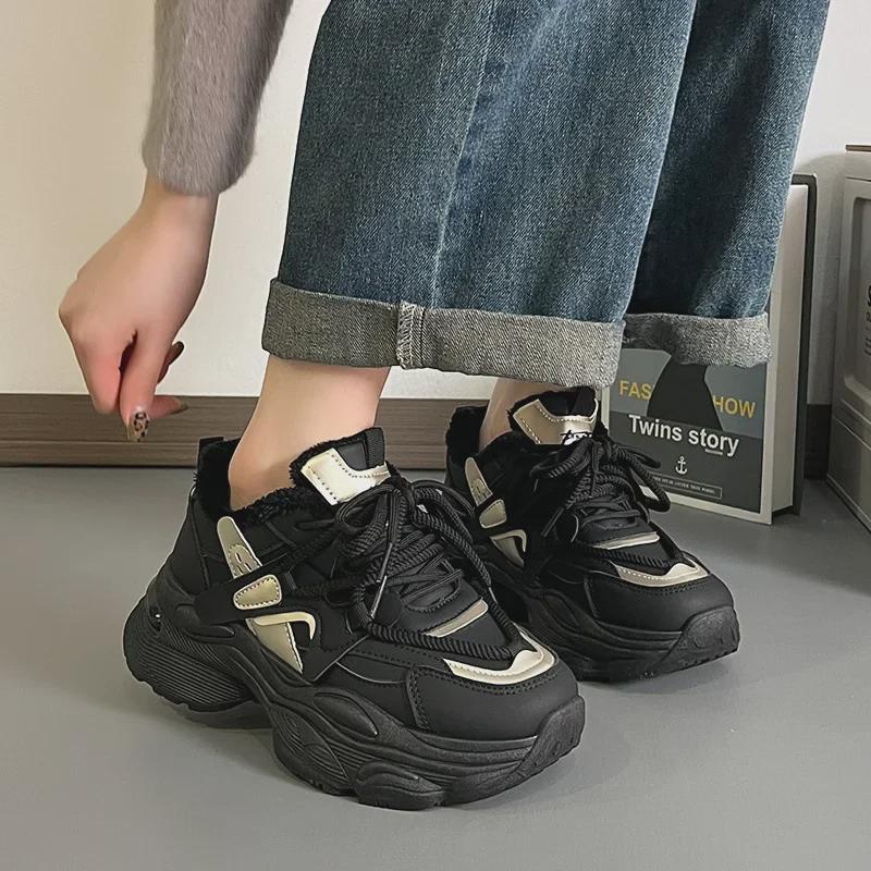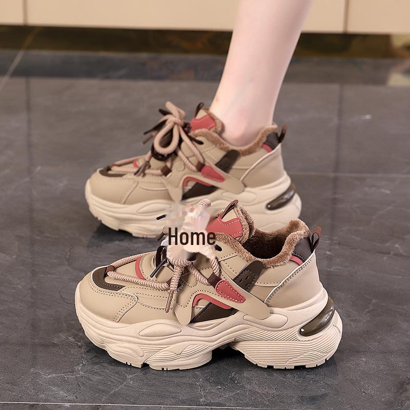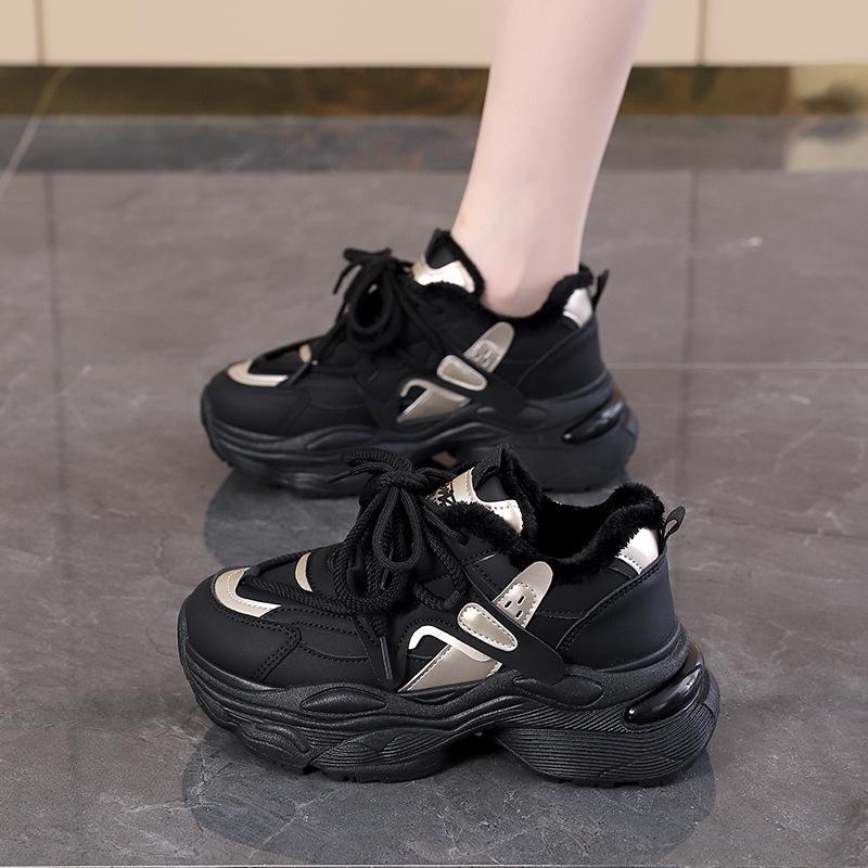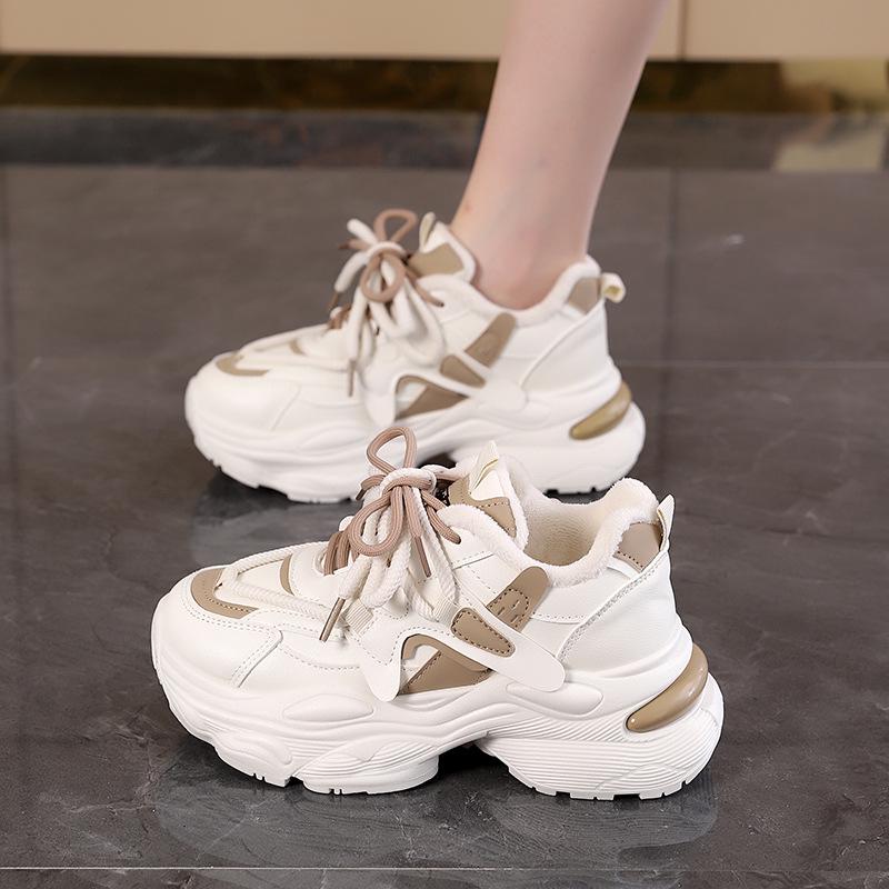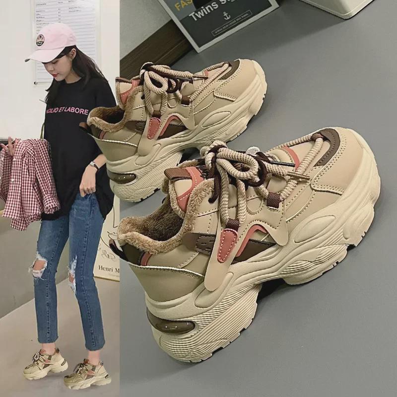 Женские плюшевые кроссовки Dad - зимний стиль 2024 года, универсальная спортивная обувь на толстой подошве, модная модель G17-1