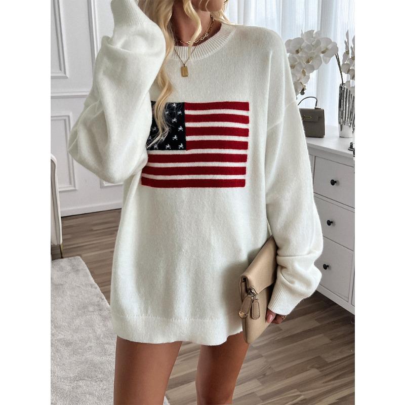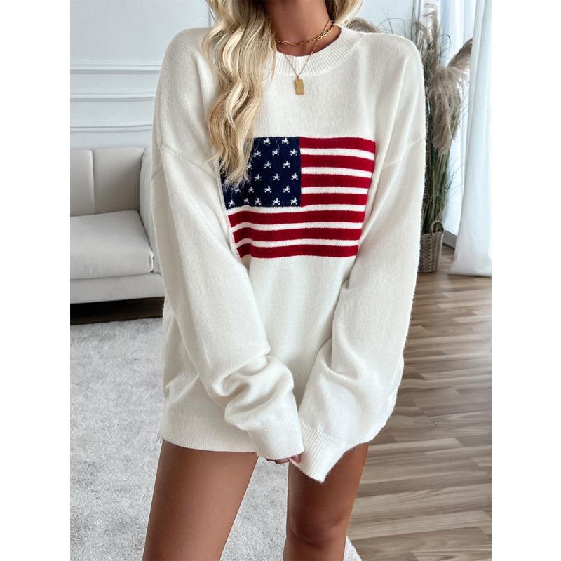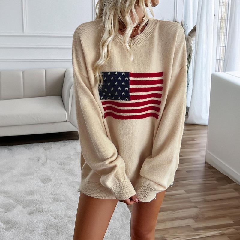 Женские осенние и зимние топы, повседневные свободные цветные вязаные свитера с длинными рукавами на тему Дня независимости