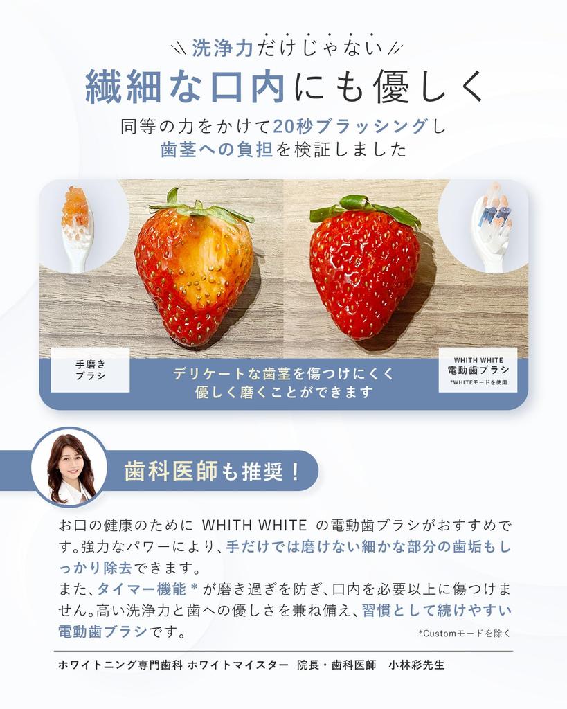 🦷 [Оборудован функцией водонепроницаемости IPX7] Основной блок полностью моющийся. Вы также можете использовать его во время принятия ванны или душа.. [Другие функции] Напоминание каждые 30 секунд / Таймер на 2 минуты* / Функция памяти (*За исключением пользовательского режима.)