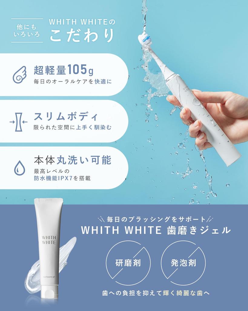 🦷 [Использует линейный двигатель] Ультразвуковая электрическая зубная щетка с ультразвуковой очисткой приблизительно 35 000–42 000 раз в минуту, которая удаляет зубной камень в 7 раз эффективнее, чем ручная чистка! (*Внутренние исследования) Он может полностью удалить зубной налет с тех участков, которые невозможно очистить вручную.. 🦷 [Уникальная 3D-кисть] Использует нежную и мягкую «кисть Dupont*». (*Только щетина) «Конструкция щетки Ямагата» естественным образом достигает задних зубов, которые трудно чистить. Кончики щетинок закруглены, что обеспечивает приятные ощущения во рту и бережное отношение к деснам.. В комплект также входит «щеточка для языка»! Мягко удаляет белую грязь с поверхности языка, вызывающую неприятный запах изо рта.. 🦷 [Легкий x тонкий] ☆105 г☆ Легкий и тонкий дизайн, который удобно держать. Благодаря продуманному корпусу его можно устанавливать даже в ограниченном пространстве, не занимая места.. 🦷 [5 режимов чистки] ①Белый: Если вас беспокоят цветные пятна ②Очистите: Очищает пятна между зубами с помощью умеренного давления воды ③Чувствительная: Ухаживает за зубами и деснами с помощью мягкой струи воды ④Полирует: Когда вы хотите сделать поверхность зуба гладкой ⑤Индивидуально: Регулируется до разных уровней вибрации путем удержания кнопки питания 🦷[ Оснащен водонепроницаемой функцией IPX7]