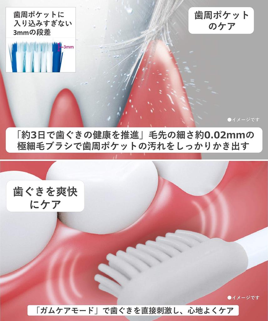 Обеспечьте здоровье десен примерно за 3 дня *3 Используйте новую щетку с ультратонкой щетиной и горизонтальную чистку, чтобы удалить бактерии, вызывающие заболевания пародонта, которые скрываются в пародонтальных карманах.