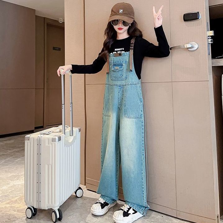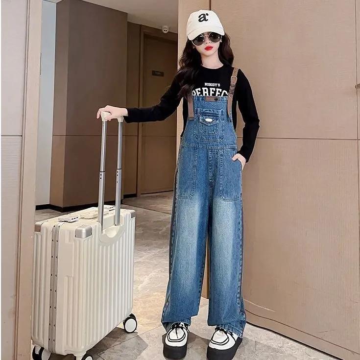 Комбинезоны из денима для девочек, модные, в стиле вестерн, топы для больших детей, весенние и осенние ретро-комбинезоны