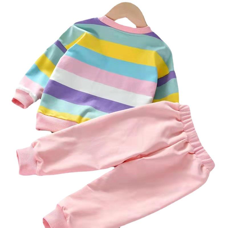 Спортивный костюм-двойка Rainbow для девочек - весна/осень 2023 г. Модный и стильный детский наряд для детей среднего и большого размера.