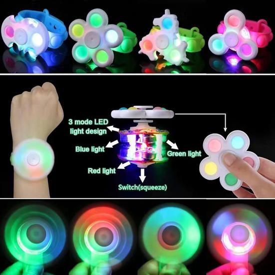 Многофункциональный дизайн: Этот светодиодный браслет плавно объединяет браслет, светодиодные фонари и игрушку-спиннер в одно очаровательное украшение для вечеринки, предлагая бесконечное развлечение как детям, так и взрослым.