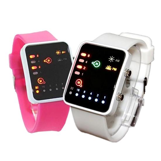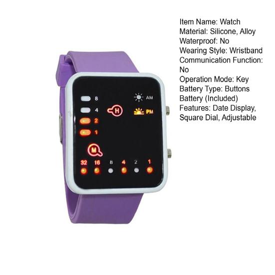 Квадратный циферблат Кнопки Батарея Питание Точная Регулируемая Пряжка Спортивные Часы Унисекс Силиконовый Ремешок Светодиодный Дисплей Повседневные Бинарные Наручные Часы