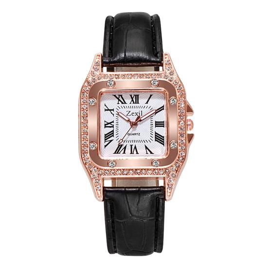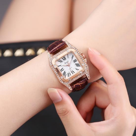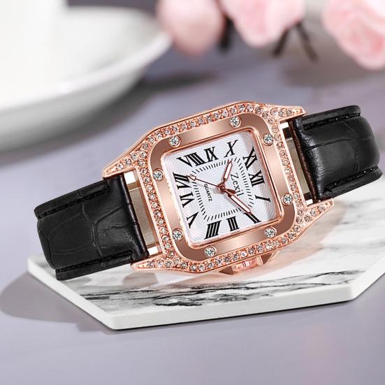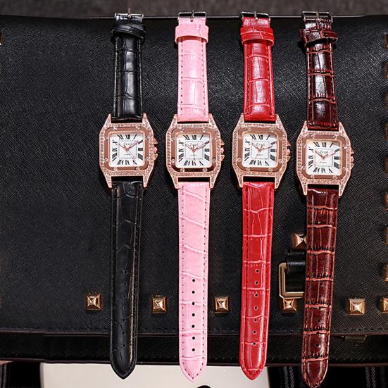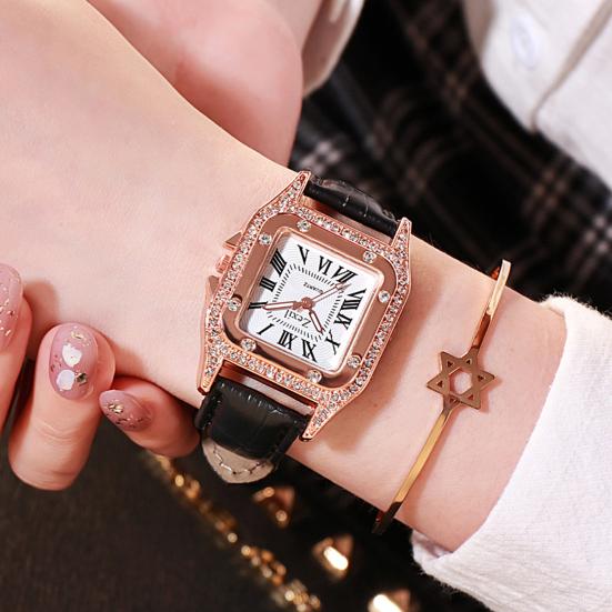 Женские часы с квадратным циферблатом, регулируемые, элегантные, высокоточные, с римскими цифрами, подарок на день рождения, ремешок из искусственной кожи, сверкающие наручные часы из металла со стразами