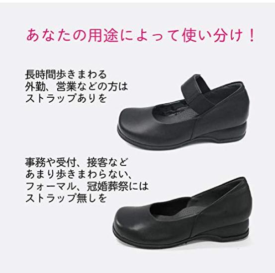 Туфли-лодочки из натуральной кожи с широким высоким подъемом, черные, 5e, косточка большого пальца стопы, легко ходить, комфортно, без боли, сделано в Японии, официальный набор, офис по поиску работы для студентов [Mio