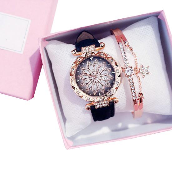 1 комплект, кварцевые часы, браслет, комплект со стразами, дисплей с указателем, регулируемое точное время, роскошные женские часы со звездным небом, браслет, набор, школьные принадлежности