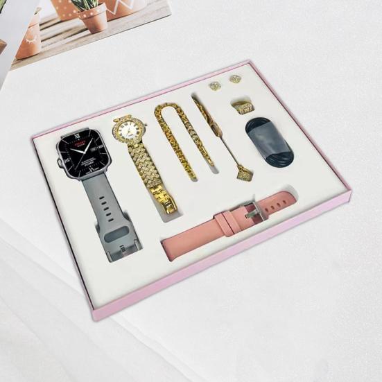 Дизайн «шесть в одном» сочетает в себе функциональность умных часов с элегантностью женских кварцевых часов, шикарным ожерельем и браслетом, серьгами, кольцом и даже включает в себя зарядное устройство и два сменных ремешка для часов..