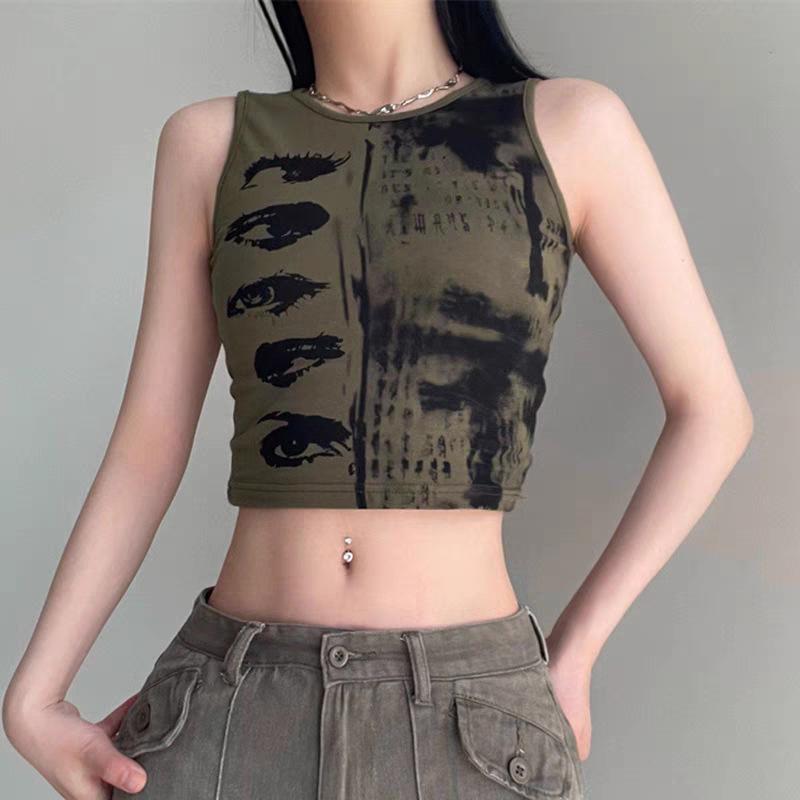 Y2K европейский и американский хип-хоп принтованный жилет модный утягивающий топ для женщин