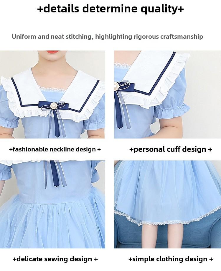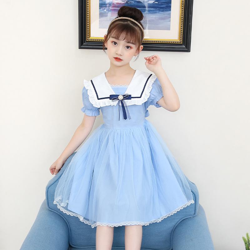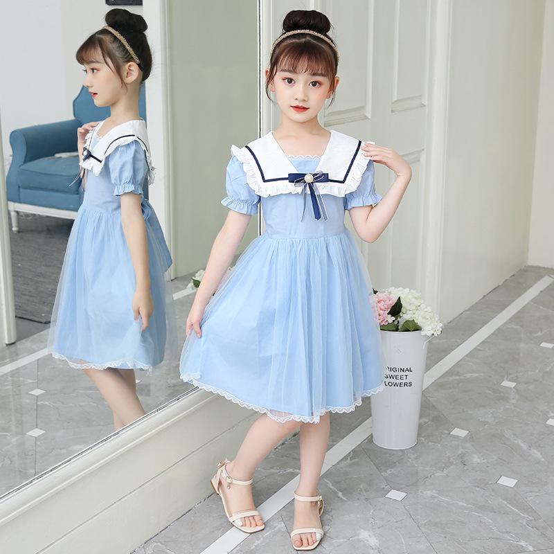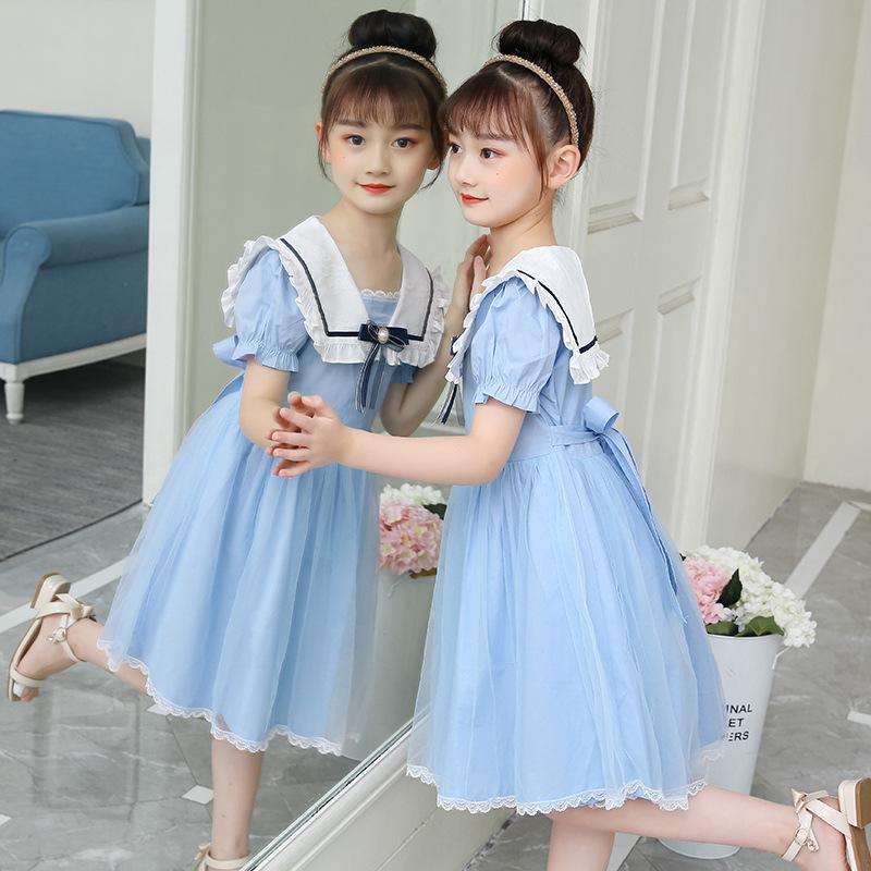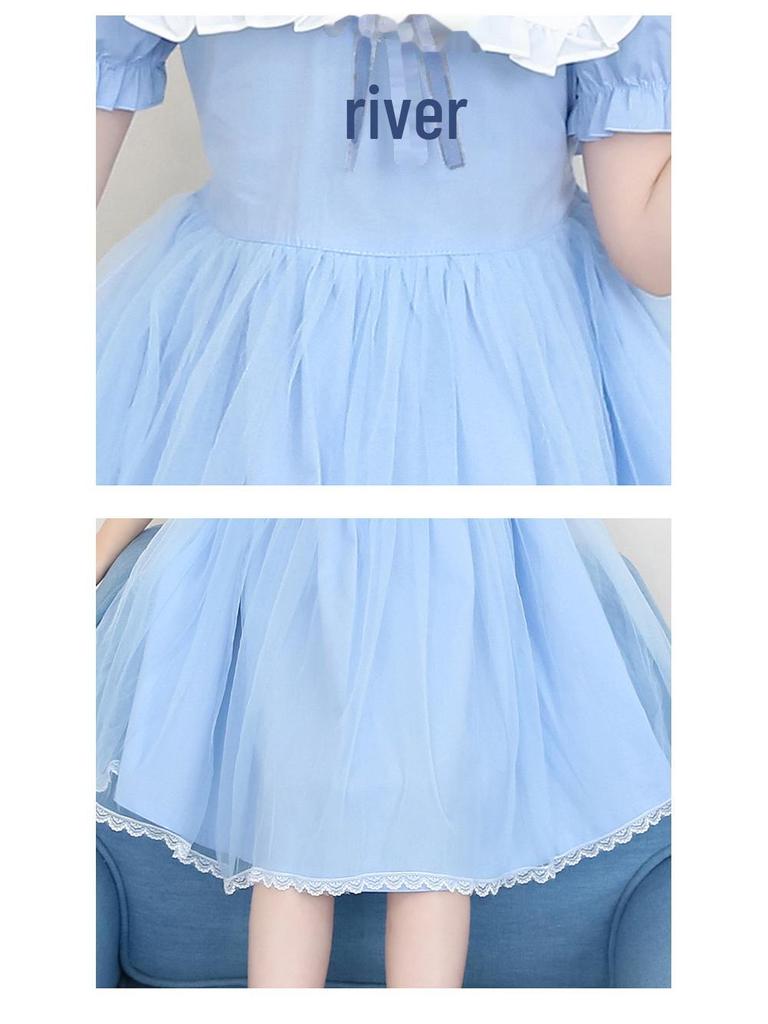 Летнее платье с кукольным воротником, милое платье принцессы для девочек - модная сетчатая юбка, детская одежда