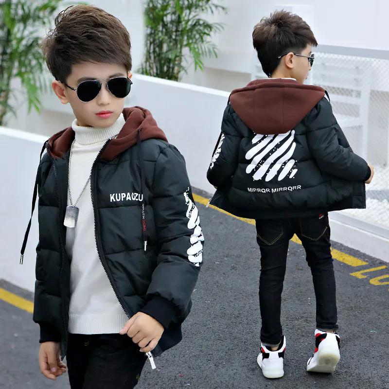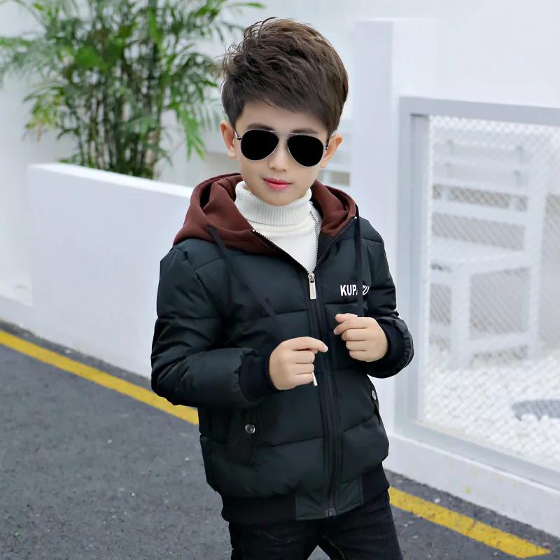 WTEMPO Детские зимние короткие пальто с хлопковой подкладкой, повседневные куртки с капюшоном на молнии, детские унисекс, утепленные пальто с карманами
