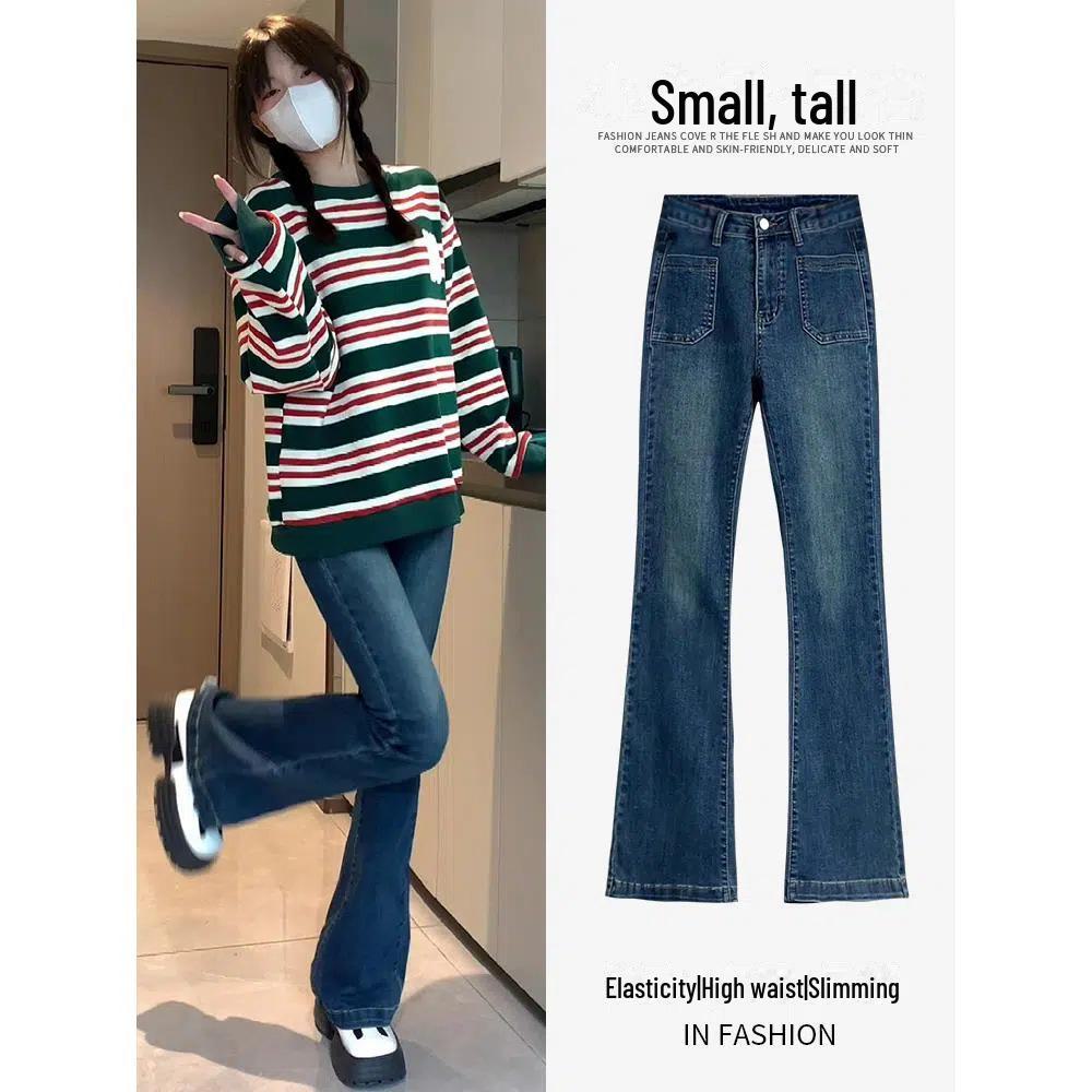 Женские расклешенные джинсы с высокой талией — эластичные, облегающие, идеально подходят для высоких и худых, весенние и осенние стили