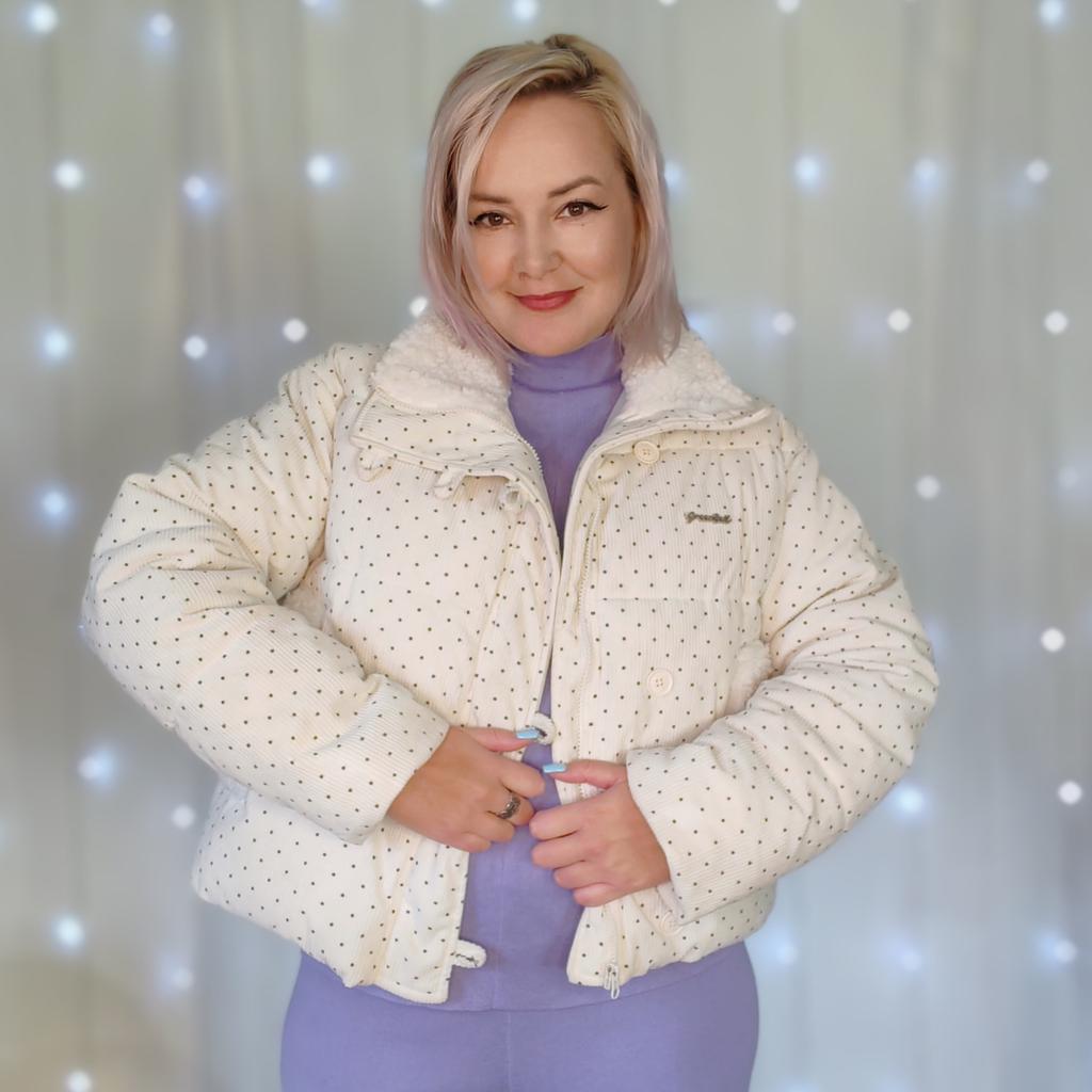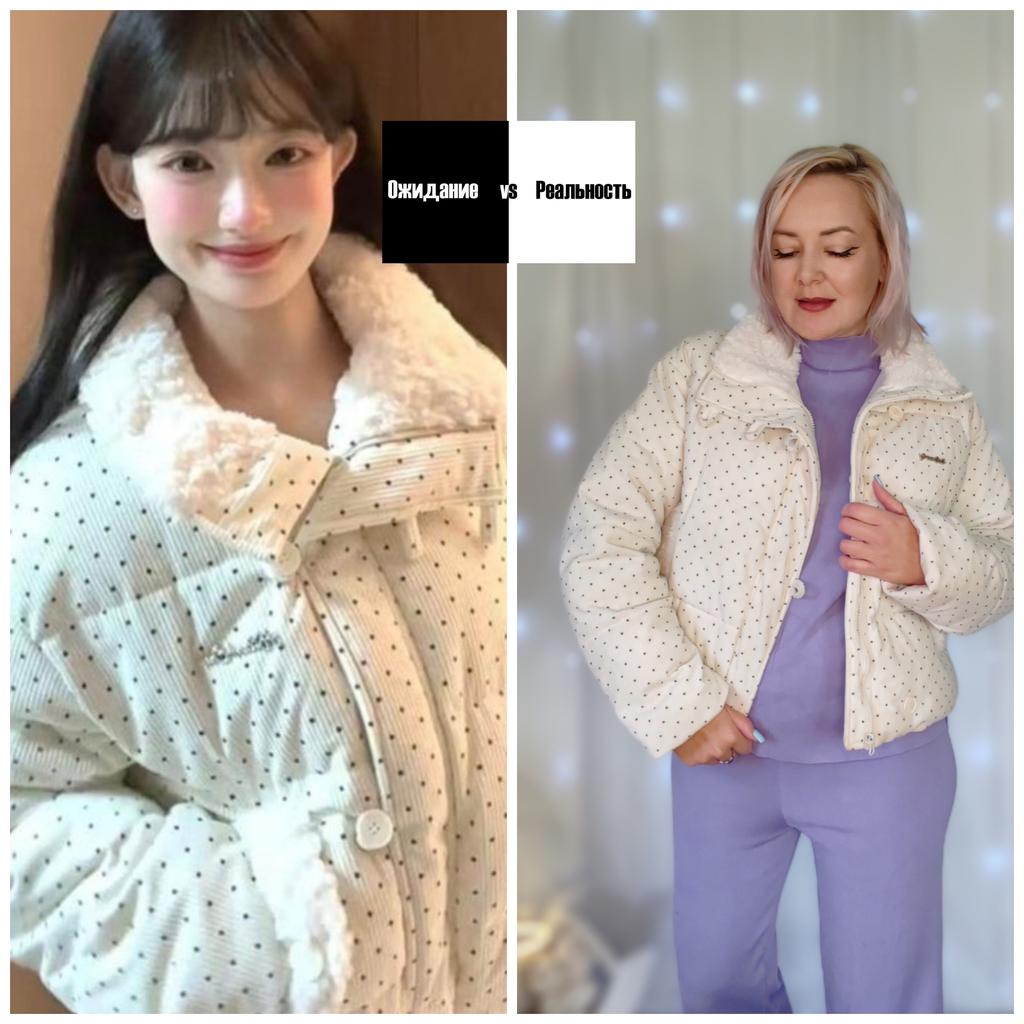 Вельветовая куртка с мехом❄️ Очень милая курточка, ну прям ми - ми - ми! Готовьтесь, Вас все будут спрашивать, где Вы её взяли ☺️ Ткань: Верхняя ткань вельвет с крупным достаточно рисунком в мелкий чёрный горошек. Внутри есть подкладка, так же используются элементы меха исскуственного под каракуль. Наполнитель синтепон, его прям много. Дизайн: Куртка застегивается на молнию, нет капюшон, но есть хороший воротник, которым легко можно защитить шею. Карманы тоже имеются. Размер: На мне XXL Мои параметры : рост 172 см 98/76/106 см Детали: Длина 60 см Плечи 57 см Длина рукава 58 см ОГ 128 см ОТ 124 см ОБ 126 см Резюмирую: Если бы не длина я бы назвала её зимней. А так это хороший вариант на позднюю осень, ранюю весну или для авто леди, даже зимой отличный вариант. Рекомендую 👍 Я не прощаюсь, M_K #вельвет #белая_куртка #мелкий_горошек #верхняя_одежда