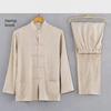 Мужской костюм Тан из хлопка и льна: Длинный рукав кардиган в китайском стиле Ханьфу из двух частей для людей среднего и пожилого возраста