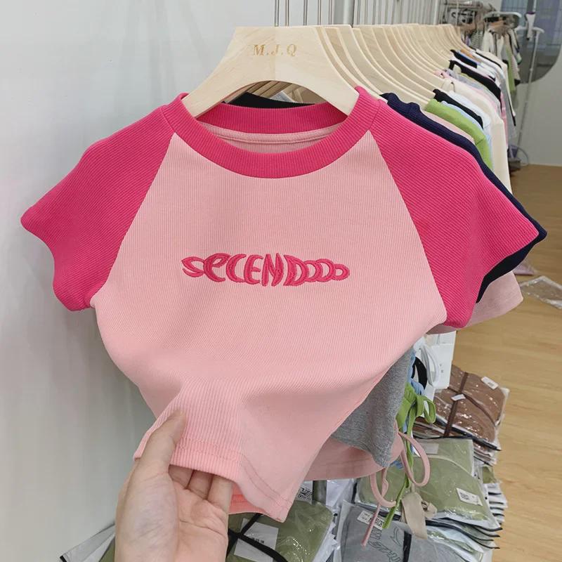 Женская летняя футболка с коротким рукавом в стиле ретро с контрастными вставками - Sweet, Pure Desire Style — купить товар онлайн с бесплатной доставкой по всему миру!