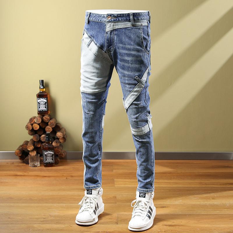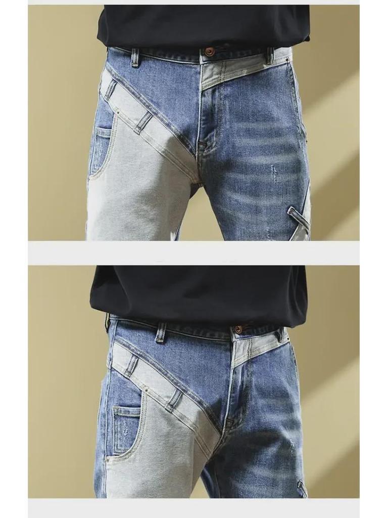 Мужские эластичные джинсы в стиле ретро-пэчворк Slim-Fit - трендовая осенне-зимняя мода