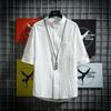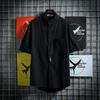 Мужская рубашка больших размеров в японском стиле с воротником-стойкой и коротким рукавом — однотонная, свободная, универсальная летняя рубашка