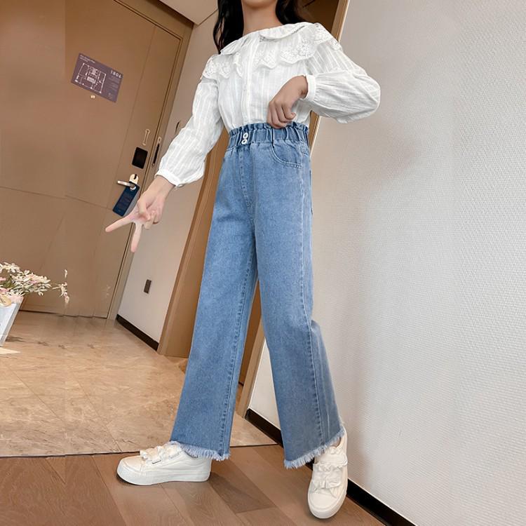 Весна и осень 2023 года, широкие джинсы для девочек — модный корейский стиль для детей