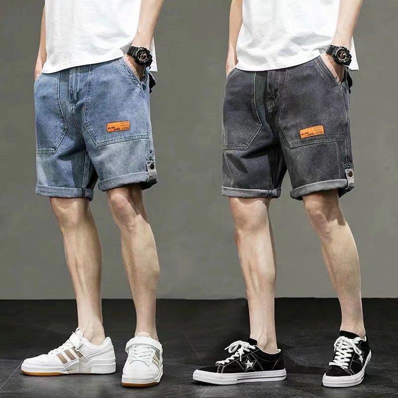 Модные мужские джинсовые шорты свободного кроя в повседневном корейском стиле с эластичной талией и разрывами. — купить товар онлайн с бесплатной доставкой по всему миру!