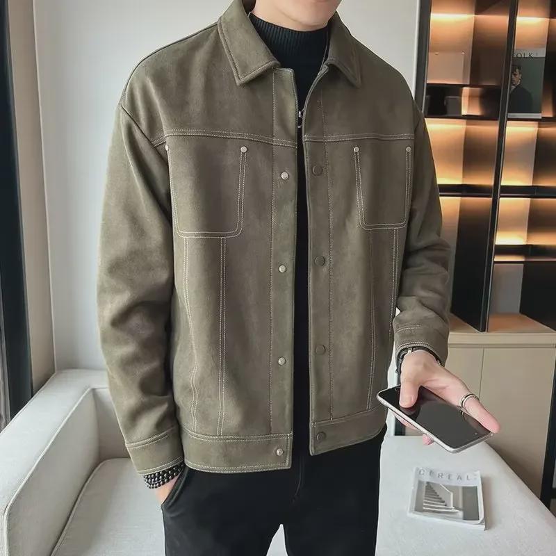 Мужская модная замшевая куртка 2023 года: Весна и осень, повседневная мода высокого класса