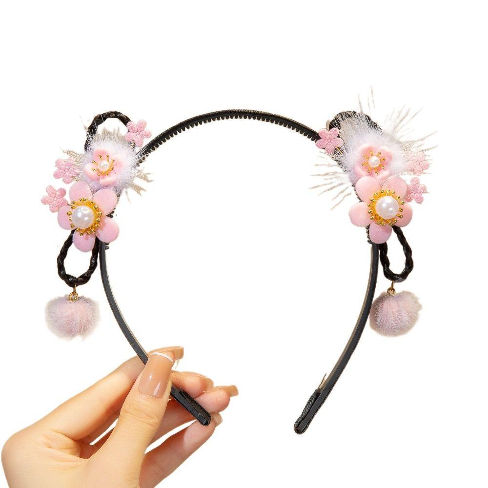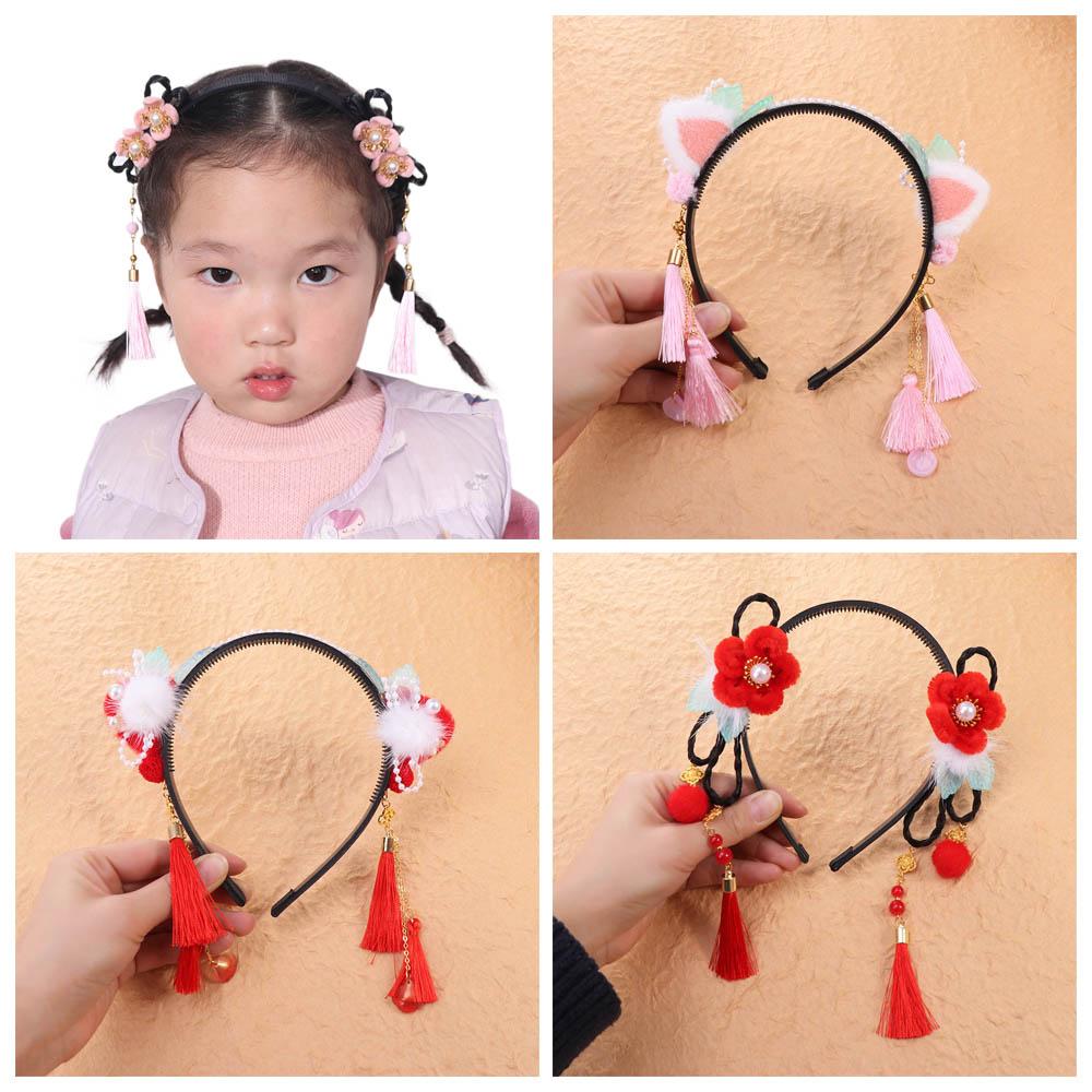 Китайский стиль парик ханьфу повязка на голову красный новогодний головной убор костюм Тан повязка на голову с цветочной кисточкой для детей