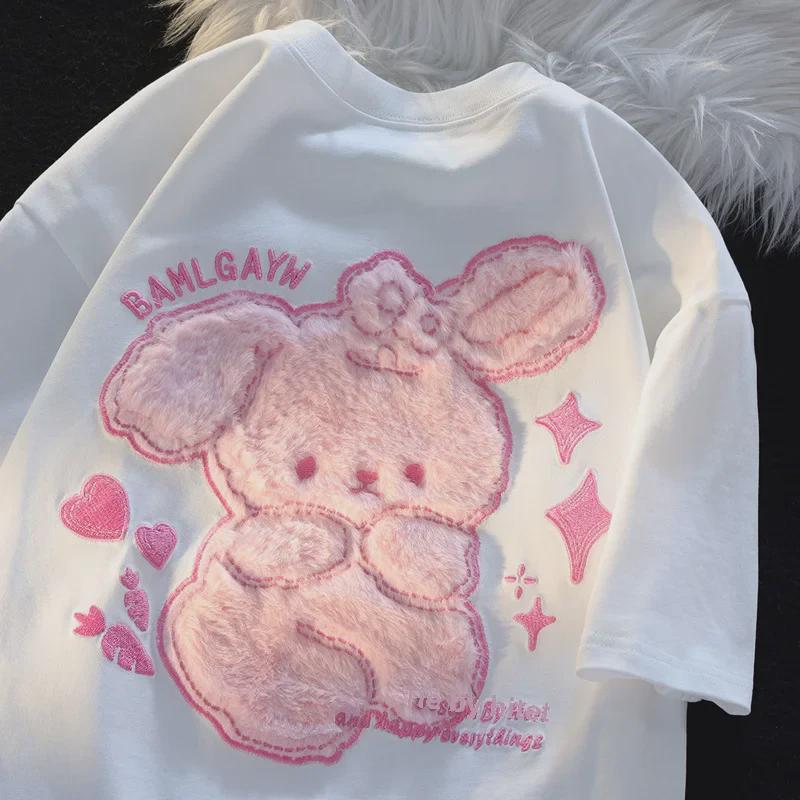 Женская футболка с коротким рукавом и вышивкой «Розовый медведь»: Милый, милый, плюшевый дизайн для весны и лета. — купить товар онлайн с бесплатной доставкой по всему миру!