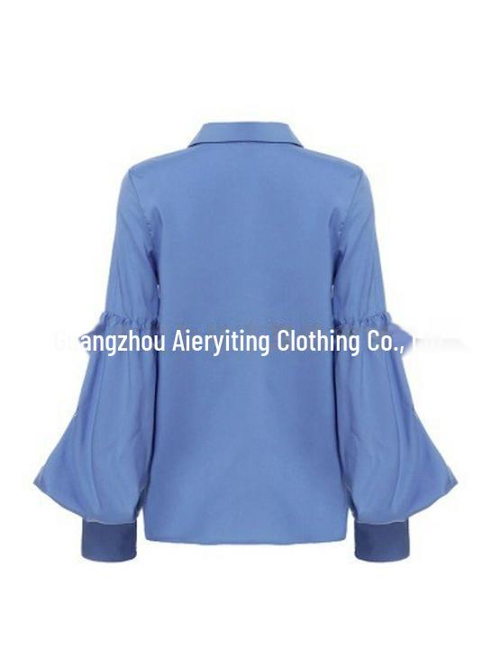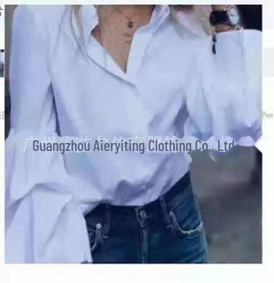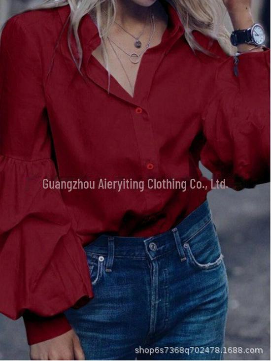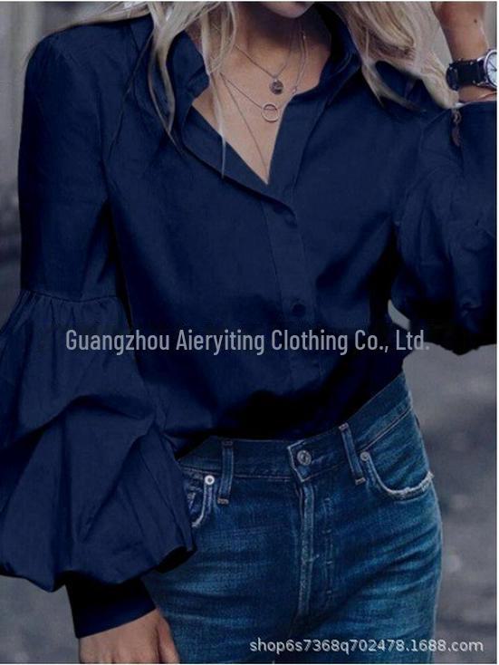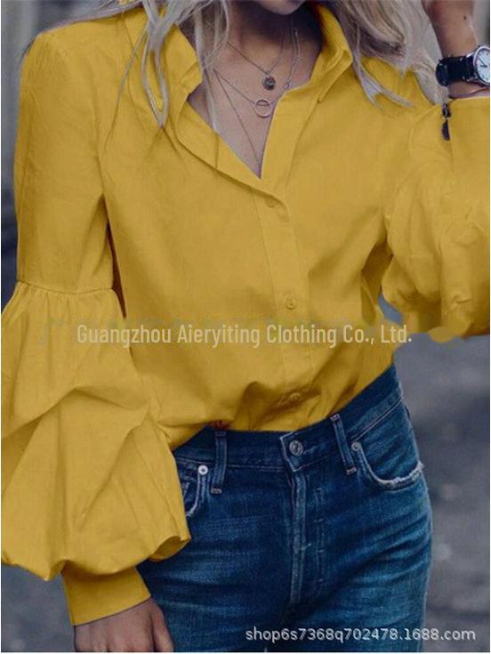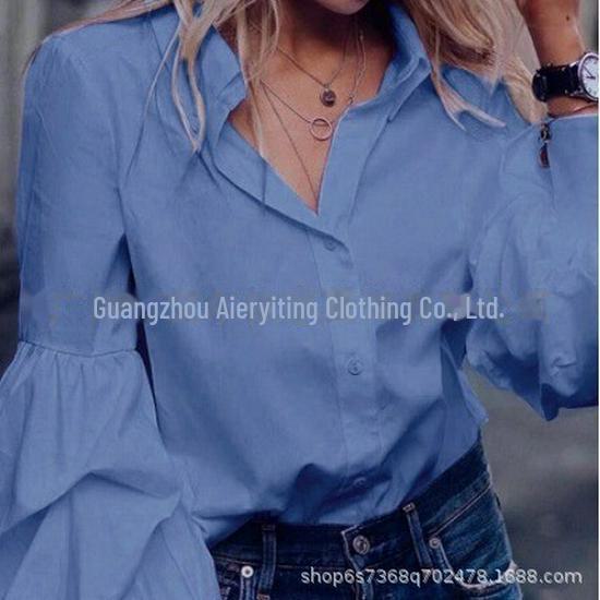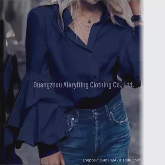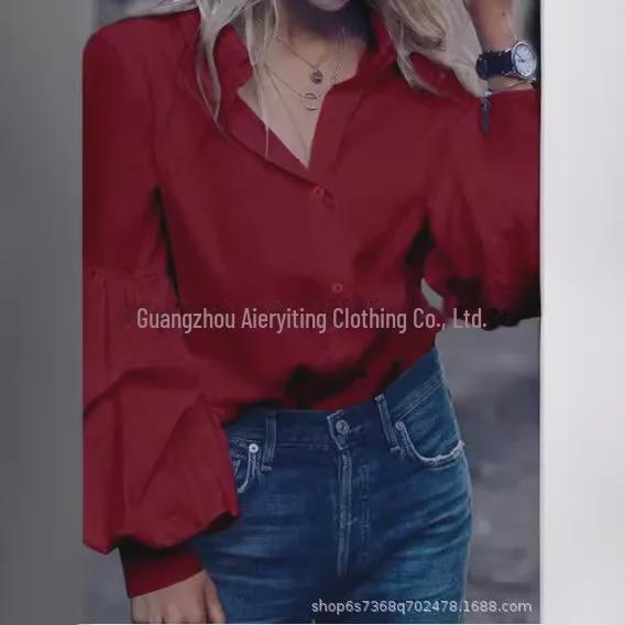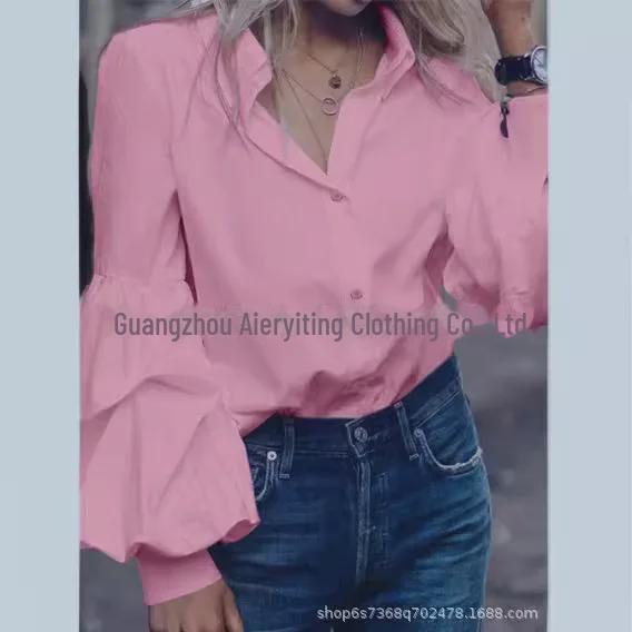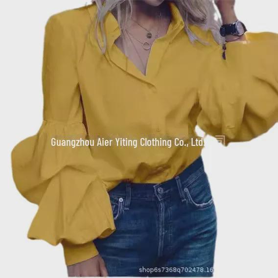Мода 2024 Женская 100% Хлопковая Однотонная Повседневная Рубашка на Пуговицах с Лацканами и Рукавами Полуфонарик