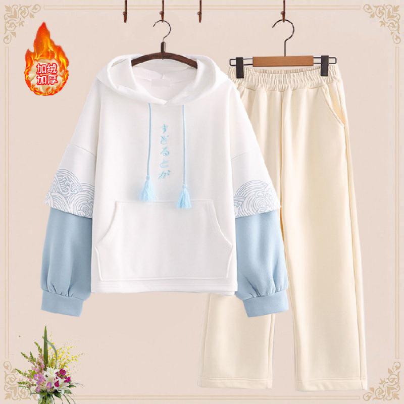 Толстая плюшевая толстовка в студенческом стиле и спортивные штаны для подростков - теплая зимняя повседневная одежда