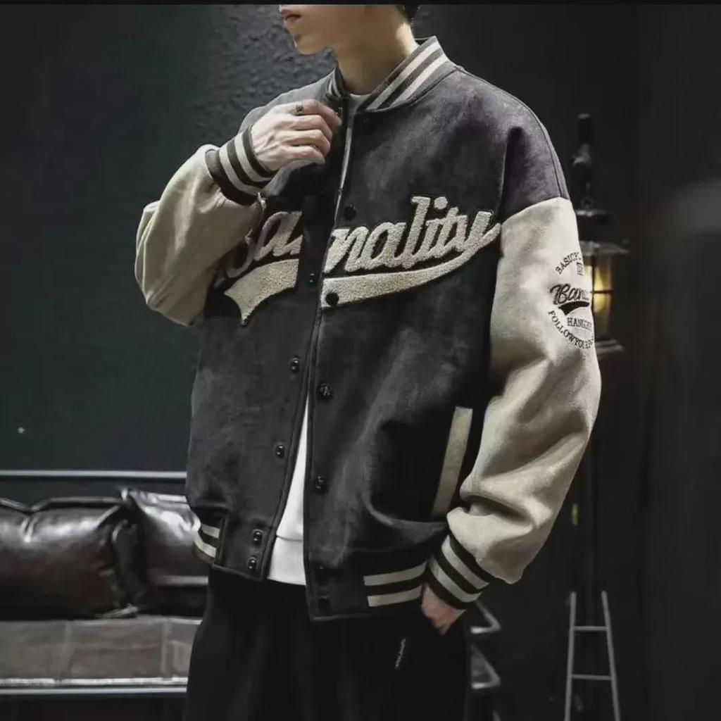 2023 Мужская замшевая ветрозащитная бейсбольная куртка с воротником-стойкой — модный японский ретро-стиль весна/осень