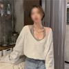 Поддельный короткий топ из двух частей с V-образным вырезом и открытыми плечами для женской одежды на весну и осень, тонкий пуловер с нишевым дизайном, модная футболка для женщин