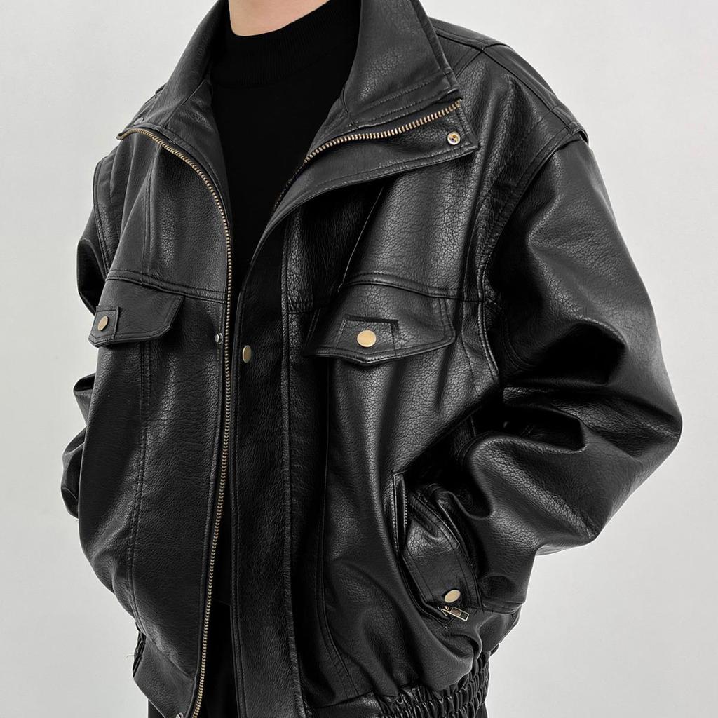 Унисекс Американская ретро уличная мотоциклетная кожаная куртка: Крутой, свободный, модный, универсальный дизайн.