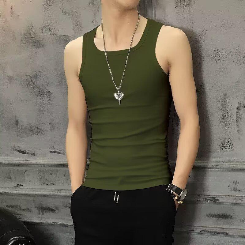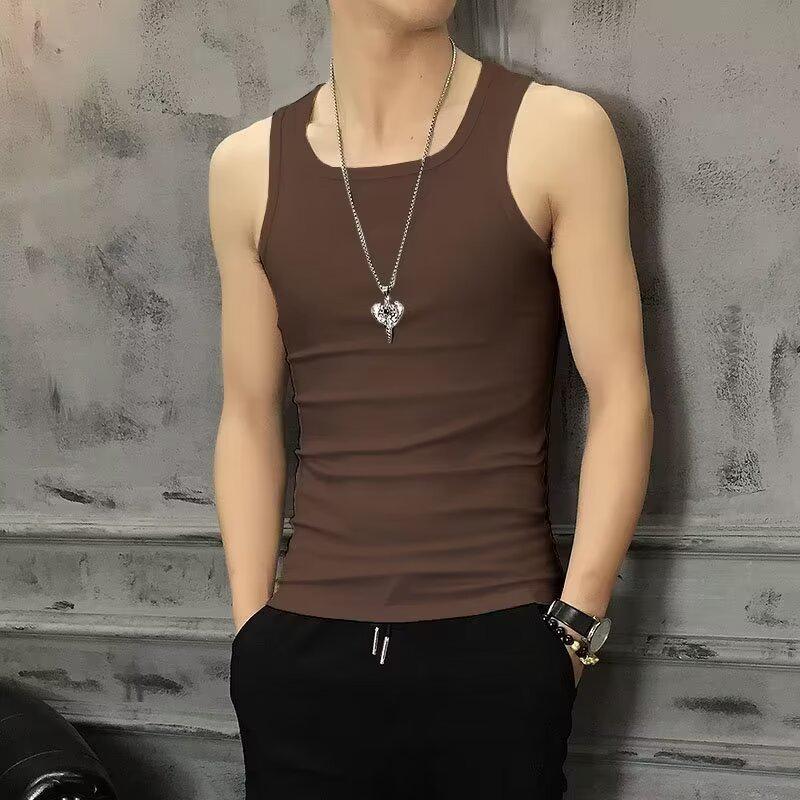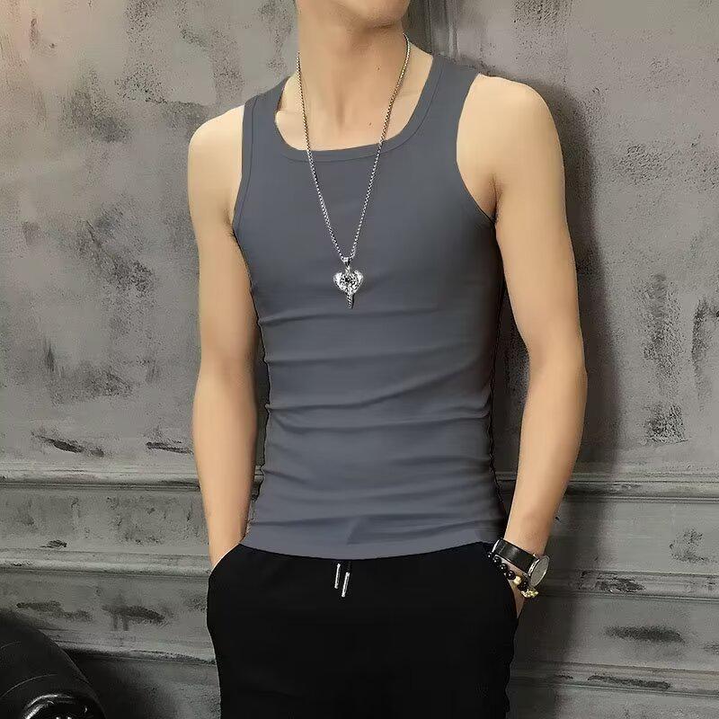 Мужской летний тонкий эластичный жилет: Молодежная, дышащая, облегающая, модная белая спортивная рубашка