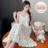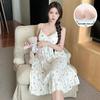 Летняя корейская ночная рубашка из тканого крепа с нагрудными подушечками - милая, тонкая, из чистого хлопка для женщин