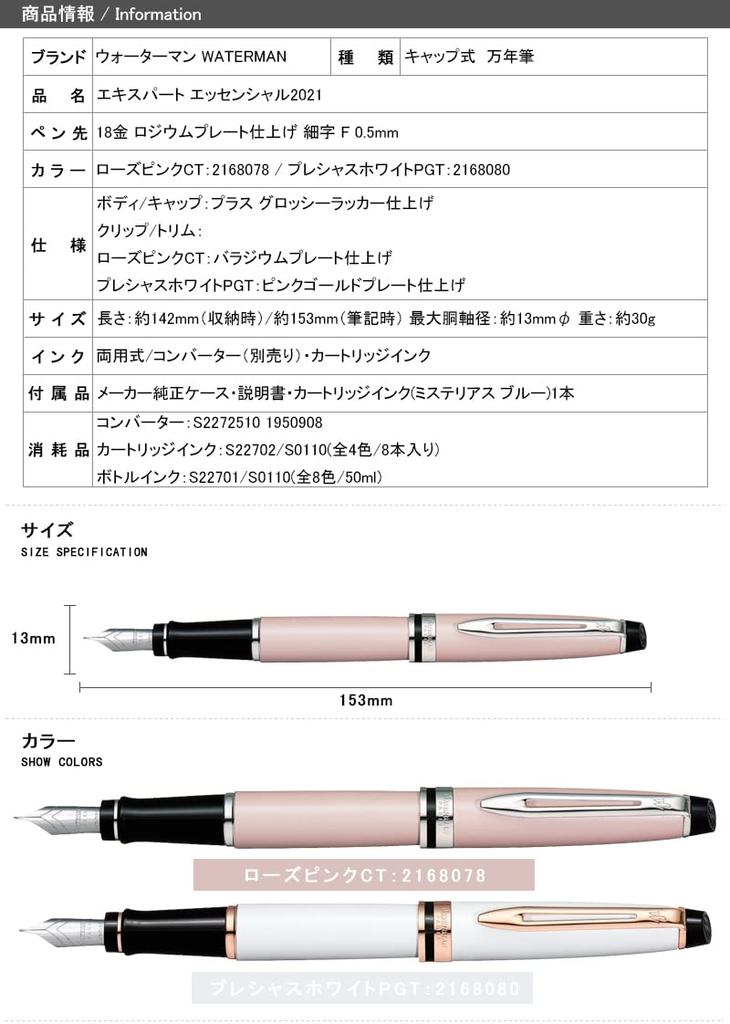Перьевая ручка WATERMAN Expert Essential Precious White PGT 18K Fine Point F 2168080 Двойного назначения