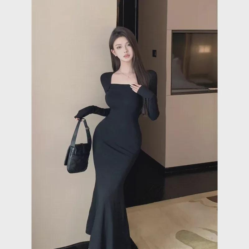 Женское платье-рыбий хвост с квадратным воротником в королевском стиле, осень/зима 2024 г.