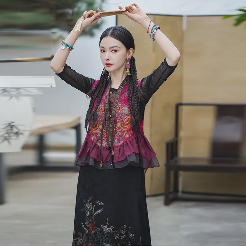 2025 Весна/Лето Женская куртка-жилет в стиле ретро с вышитыми пуговицами в китайском стиле — купить товар онлайн с бесплатной доставкой до всему миру!