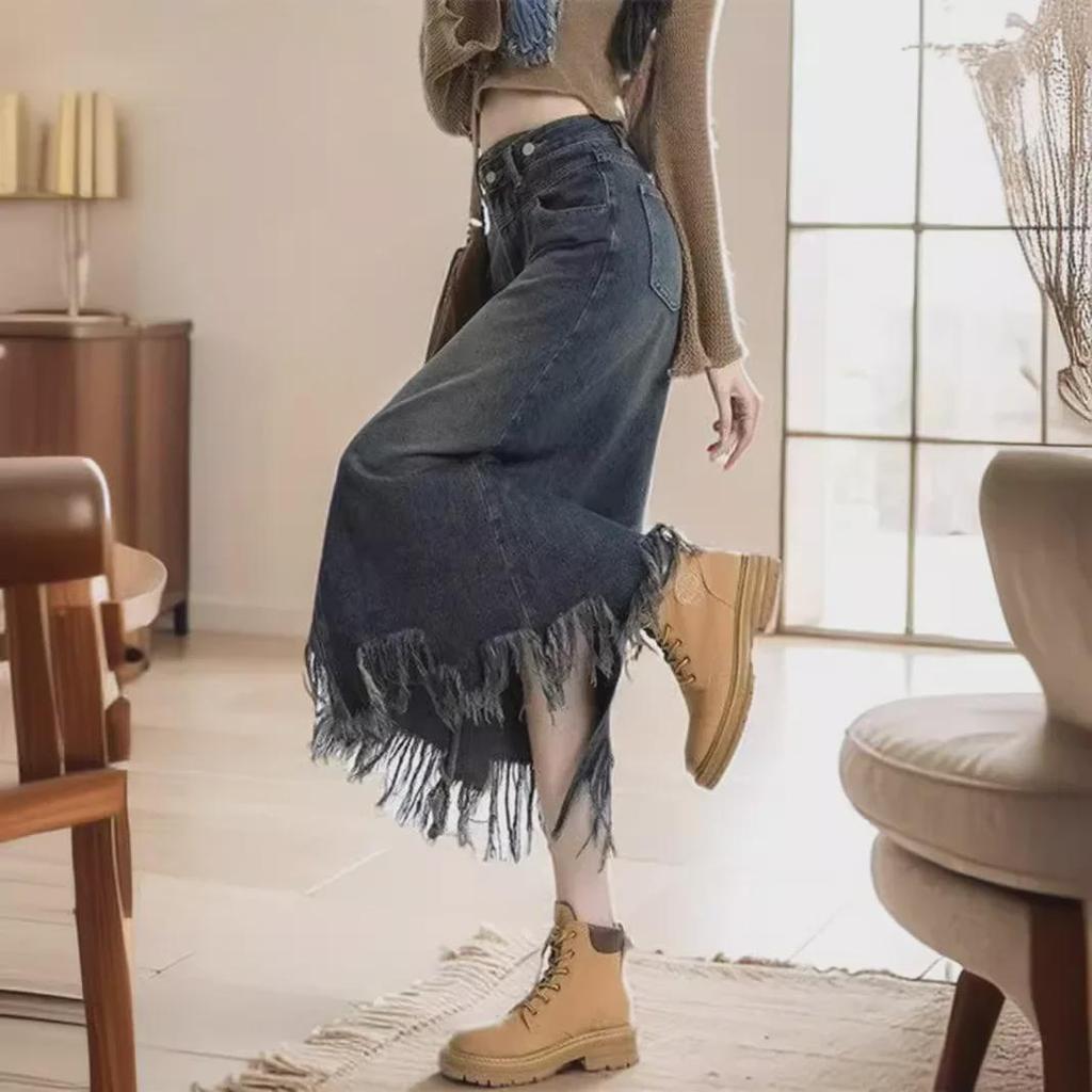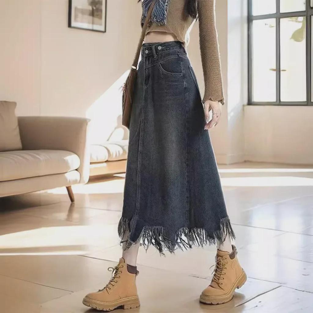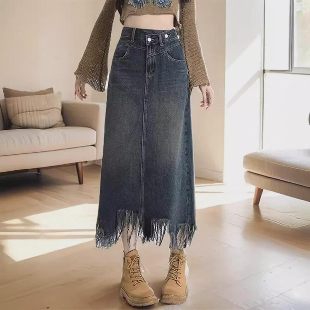 Юбка-рыбий хвост из денима средней длины с высокой талией в стиле ретро-американской моды для женщин