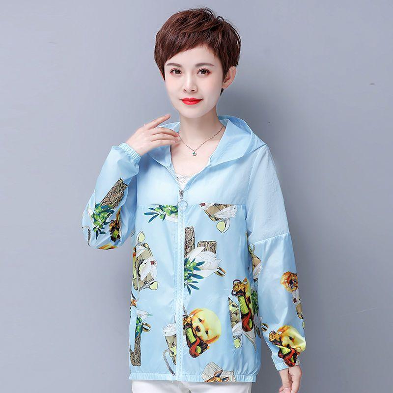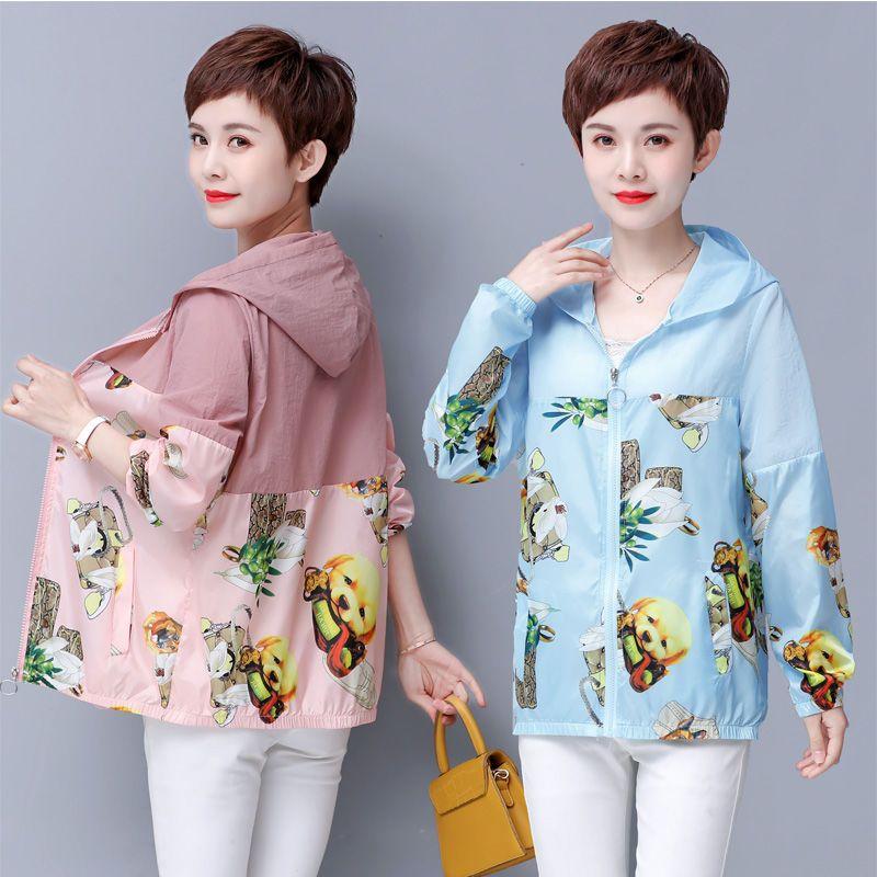 Солнцезащитная одежда с капюшоном для женщин, короткие летние фасоны, новая женская солнцезащитная одежда, устойчивая к ультрафиолетовому излучению, куртка больших размеров с принтом