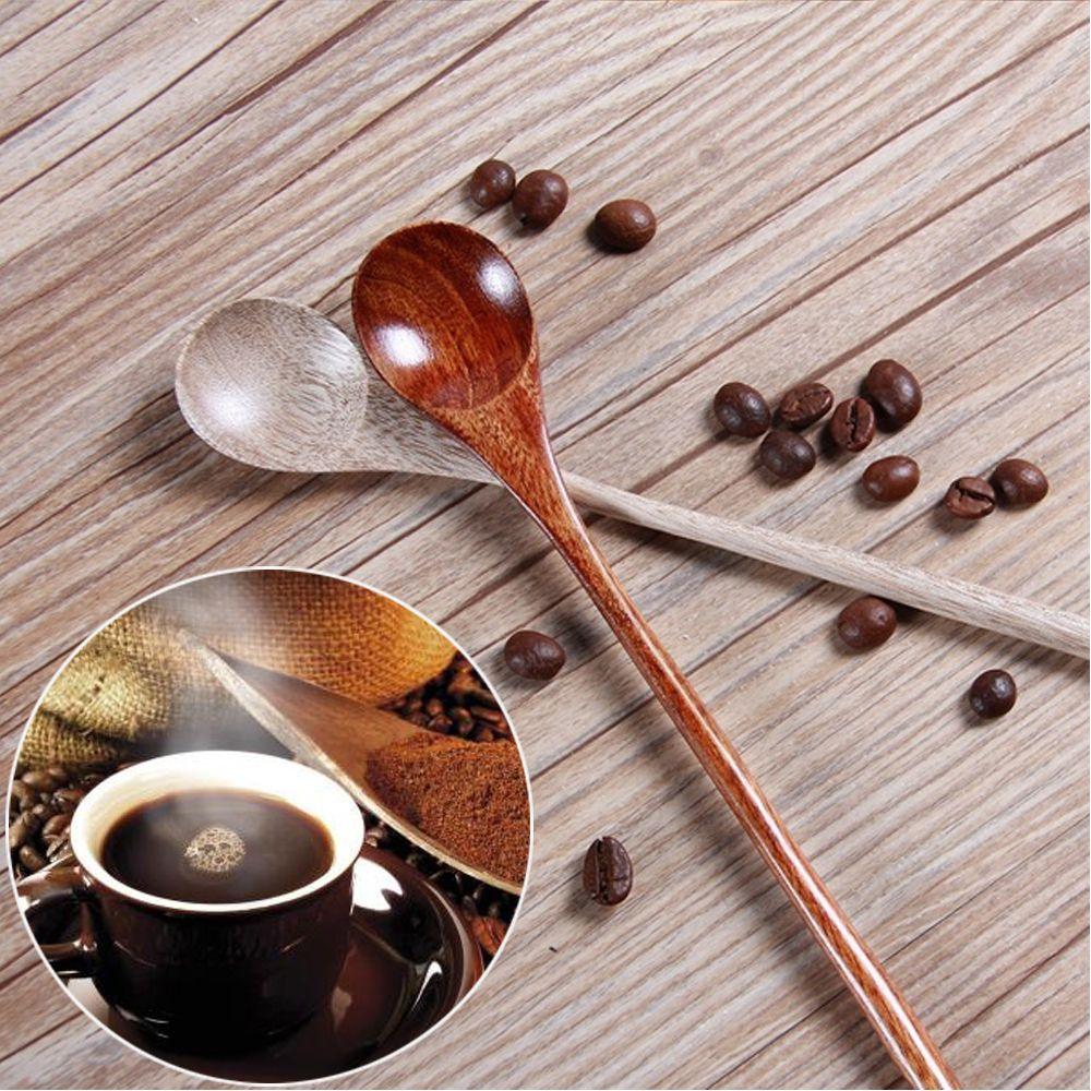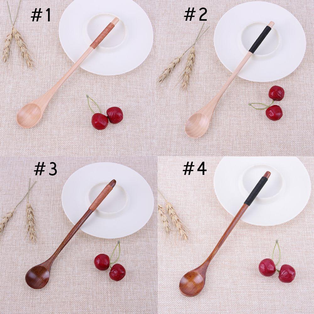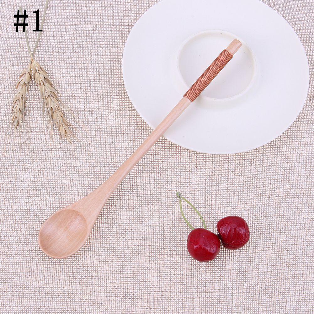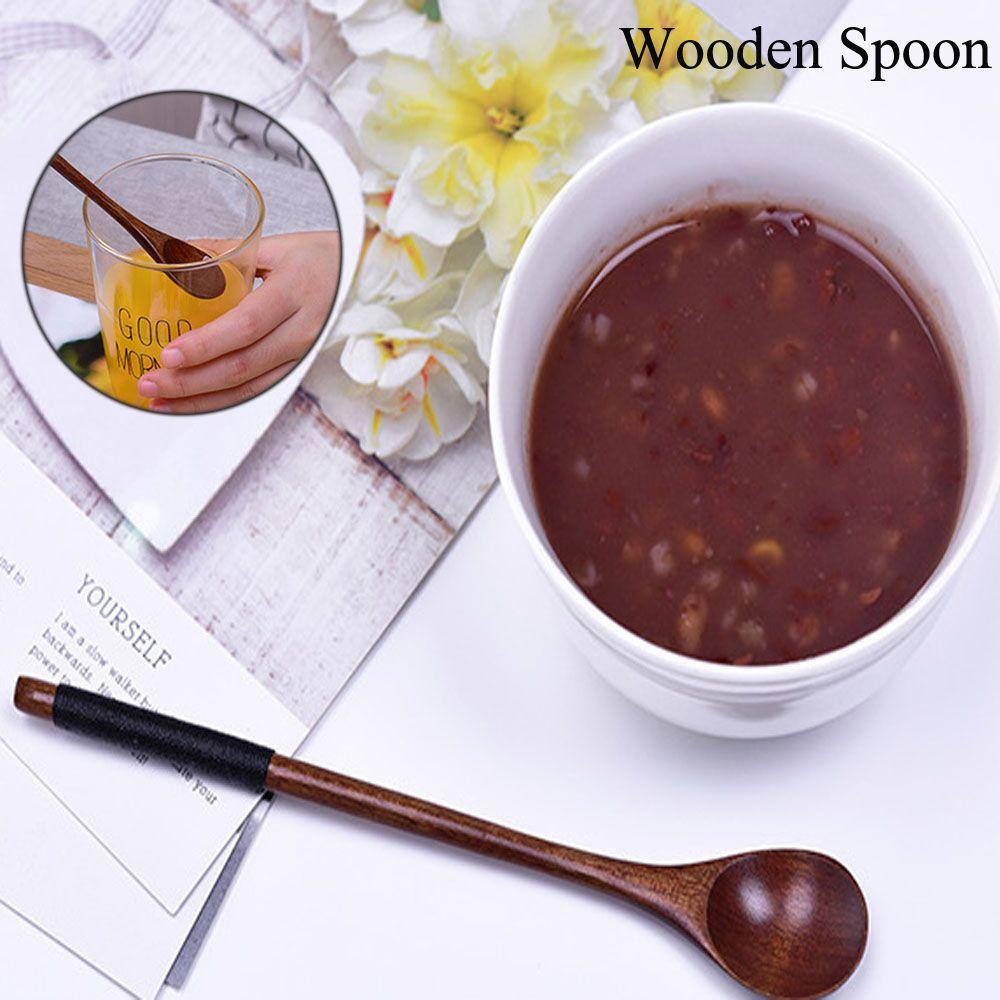 Kitchen Dining Desserts Condiment Rice Soup Kids Spoon Tea Scoops Long-handled Wooden Spoons