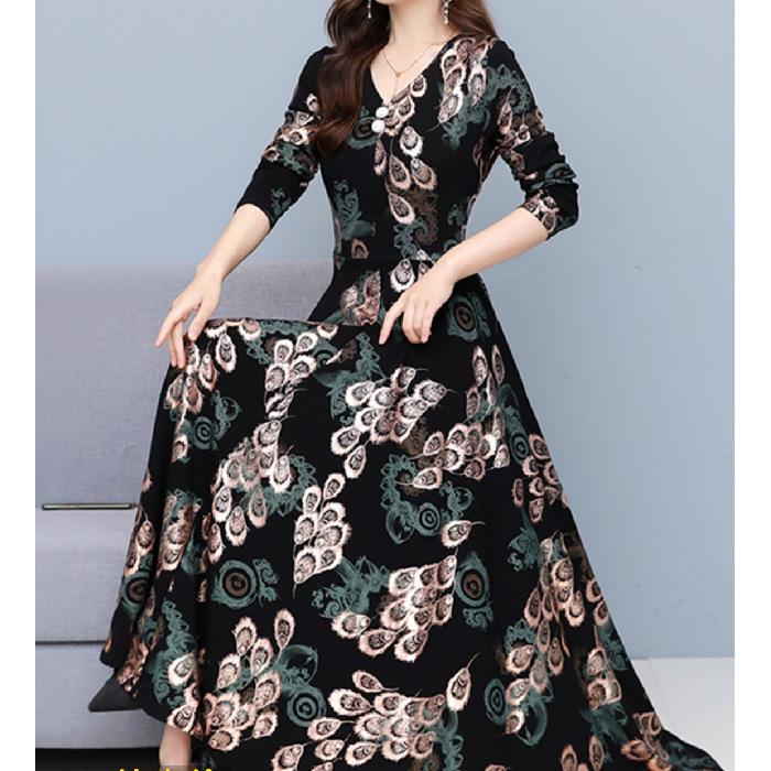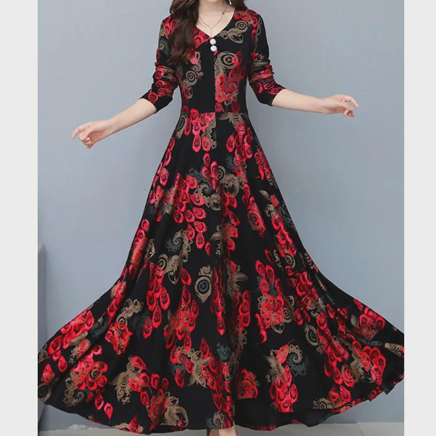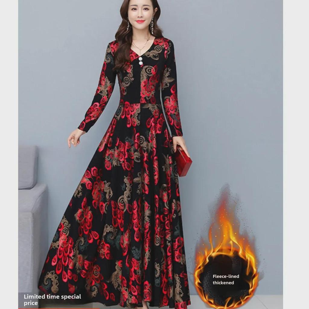 Женское бархатное утолщенное платье с карманами на осень/зиму - стильная длинная юбка для людей среднего и пожилого возраста